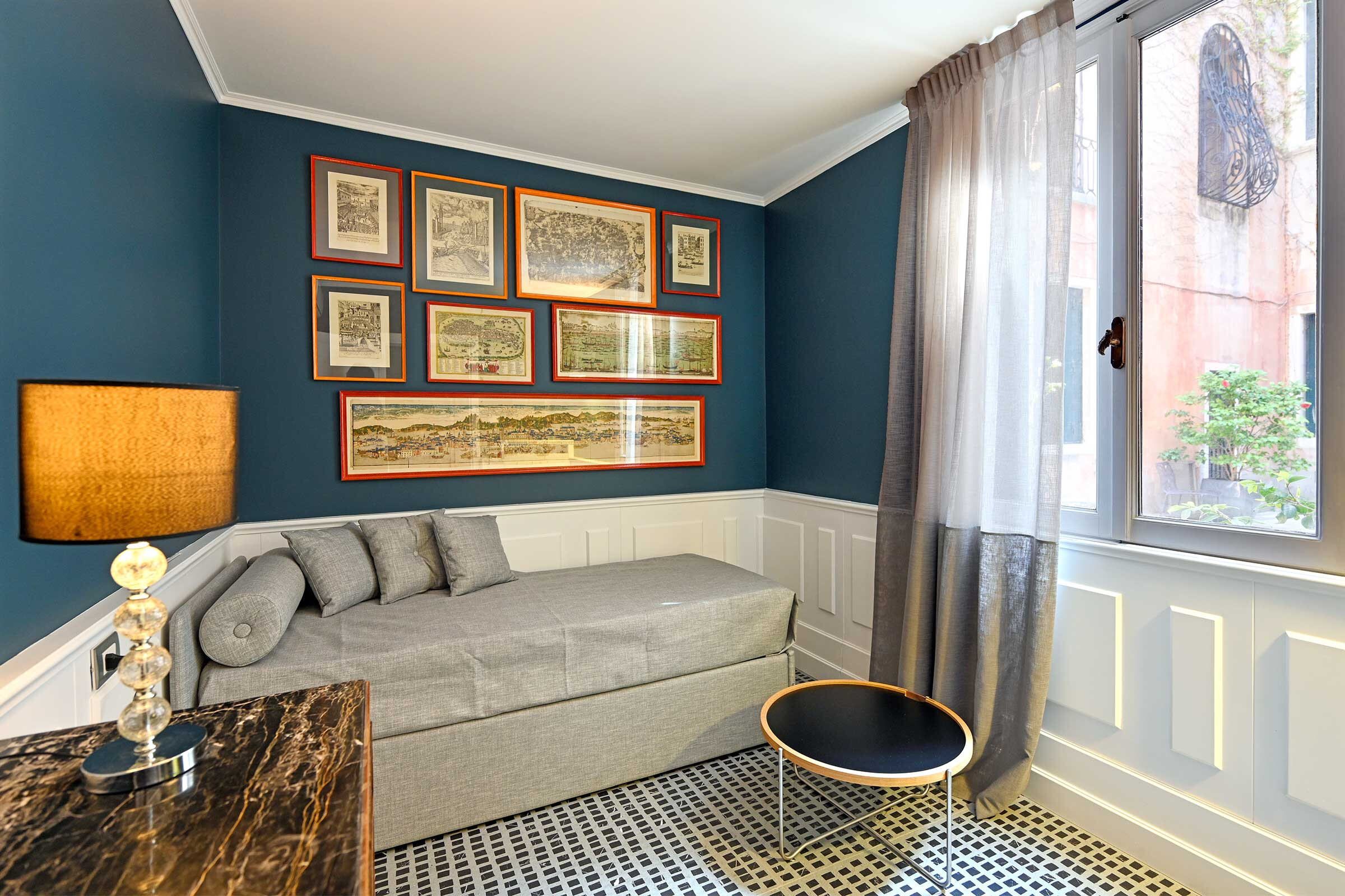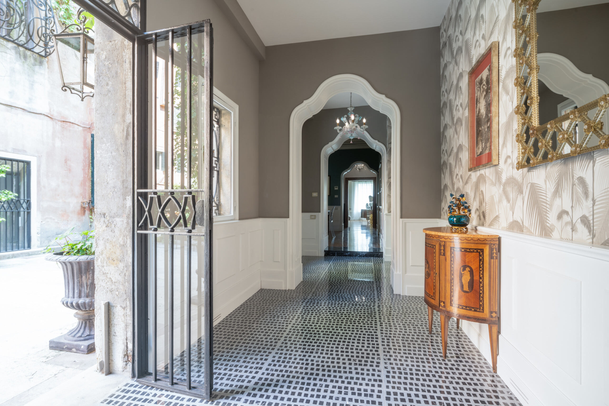 The communal entrance hall witnesses the noble past of this Palazzo and you will be even more thrilled by the wooden terrace on the Grand Canal which is an absolute privilege, especially in this part of the city.