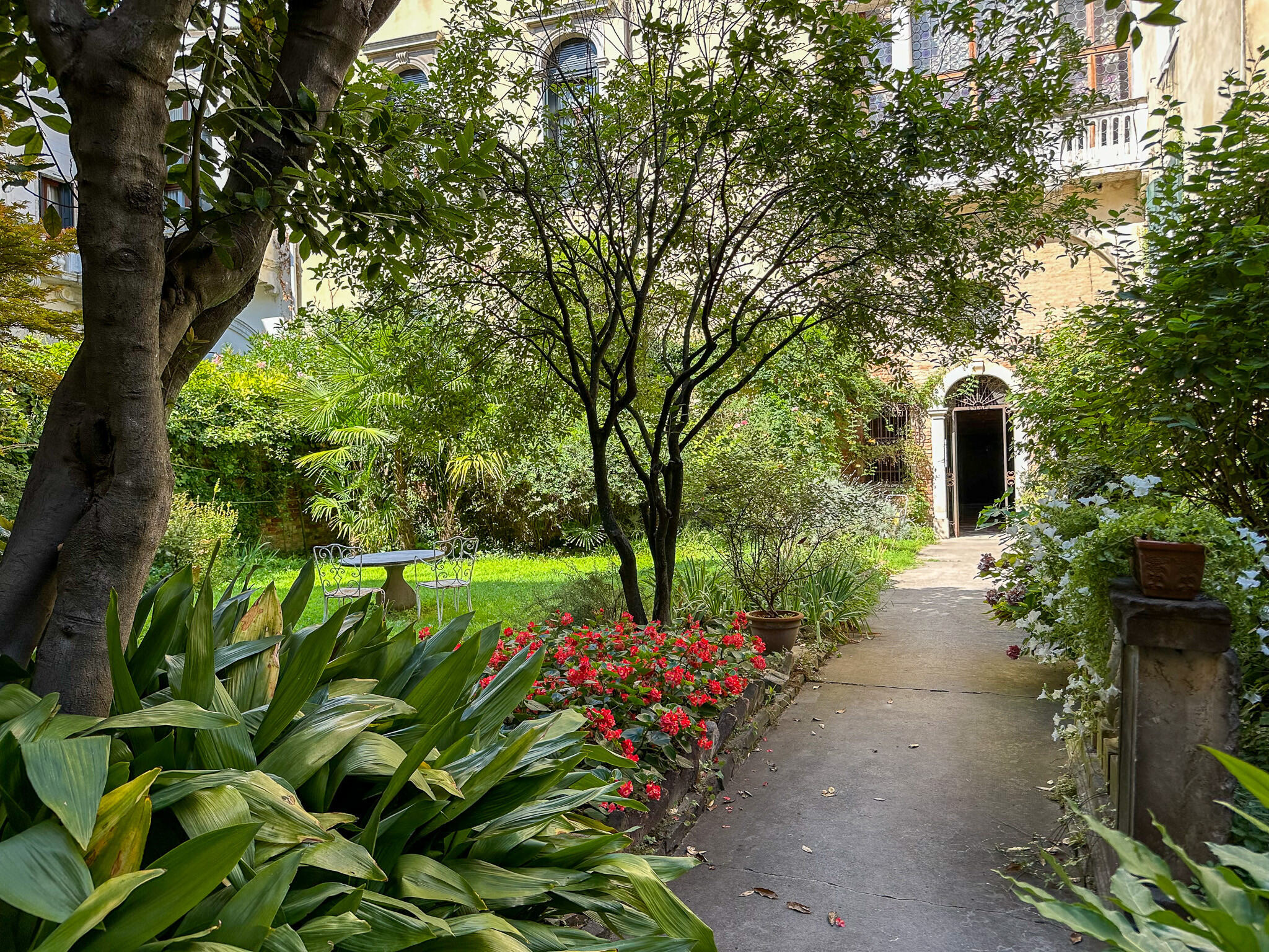 In the lush shared garden furnished with marble table and wrought-iron chairs you can enjoy a quiet moment away from the crowds, often in the company of the caring landlady's beautiful cats but rarely in the company of other neighbors.
