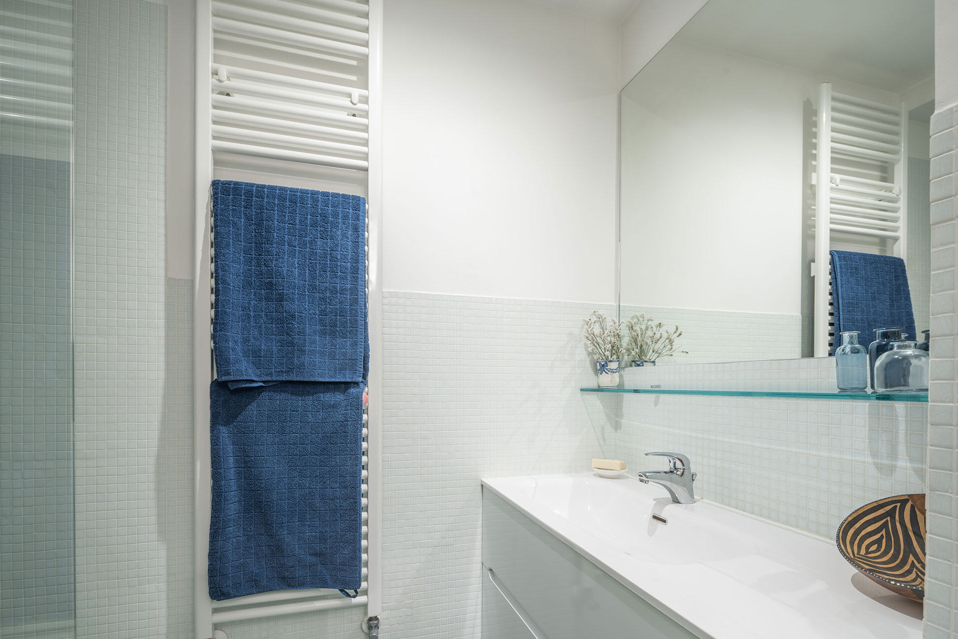 Because of the many south-facing windows at the Canal side, the Miranda apartment is full of natural light all year long. The main living area is of good size and there is a functional and well-equipped open space kitchen with a large fridge, freezer, dishwasher, oven and all you need for cooking a fabulous meal. The living room is cosy: there is a nice wooden table for six people, while the amenities of this home include Air Conditioning / Heating system, Wi-Fi, TV, sound system, Nespresso coffee machine and all basic kitchen appliances.