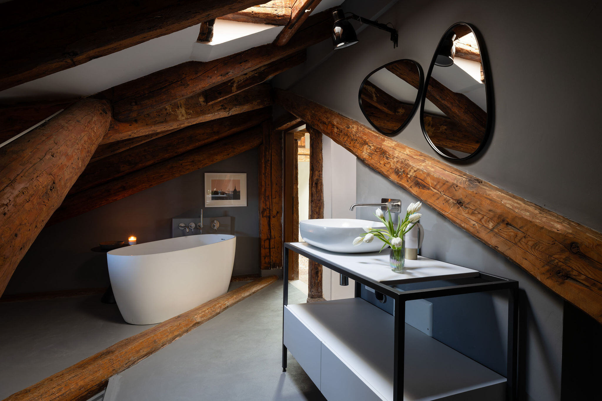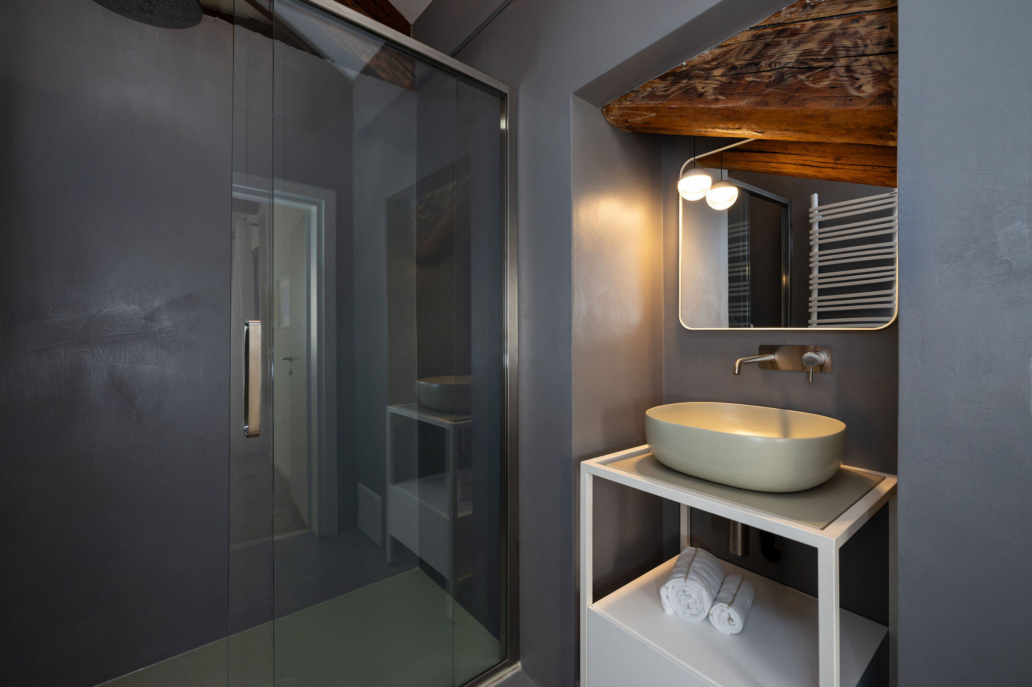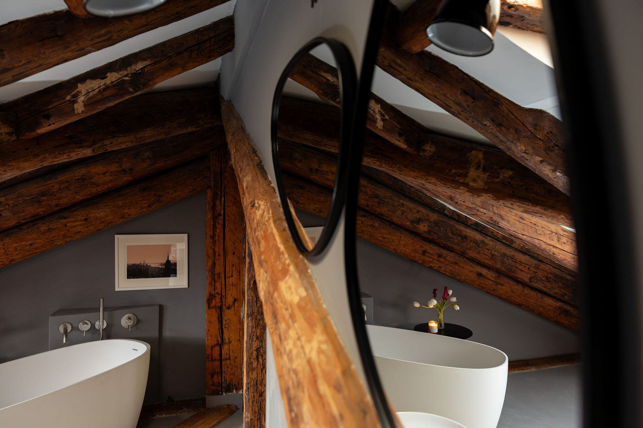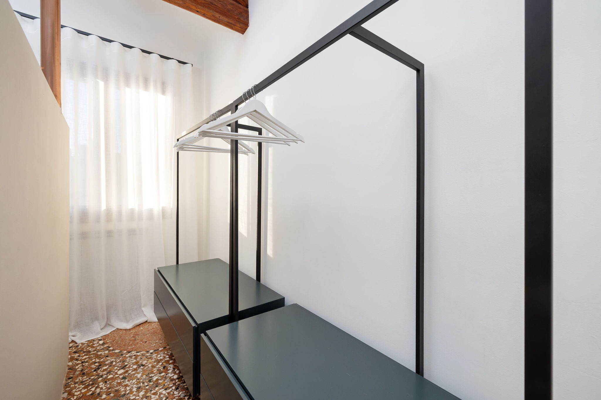 Situated on the third and top floor of a 17th-century building that has recently undergone a complete renovation, this apartment embodies the charm of a classic Venetian attic, featuring exposed beams and trusses in perfect harmony with furnishings signed by renowned Italian designers.