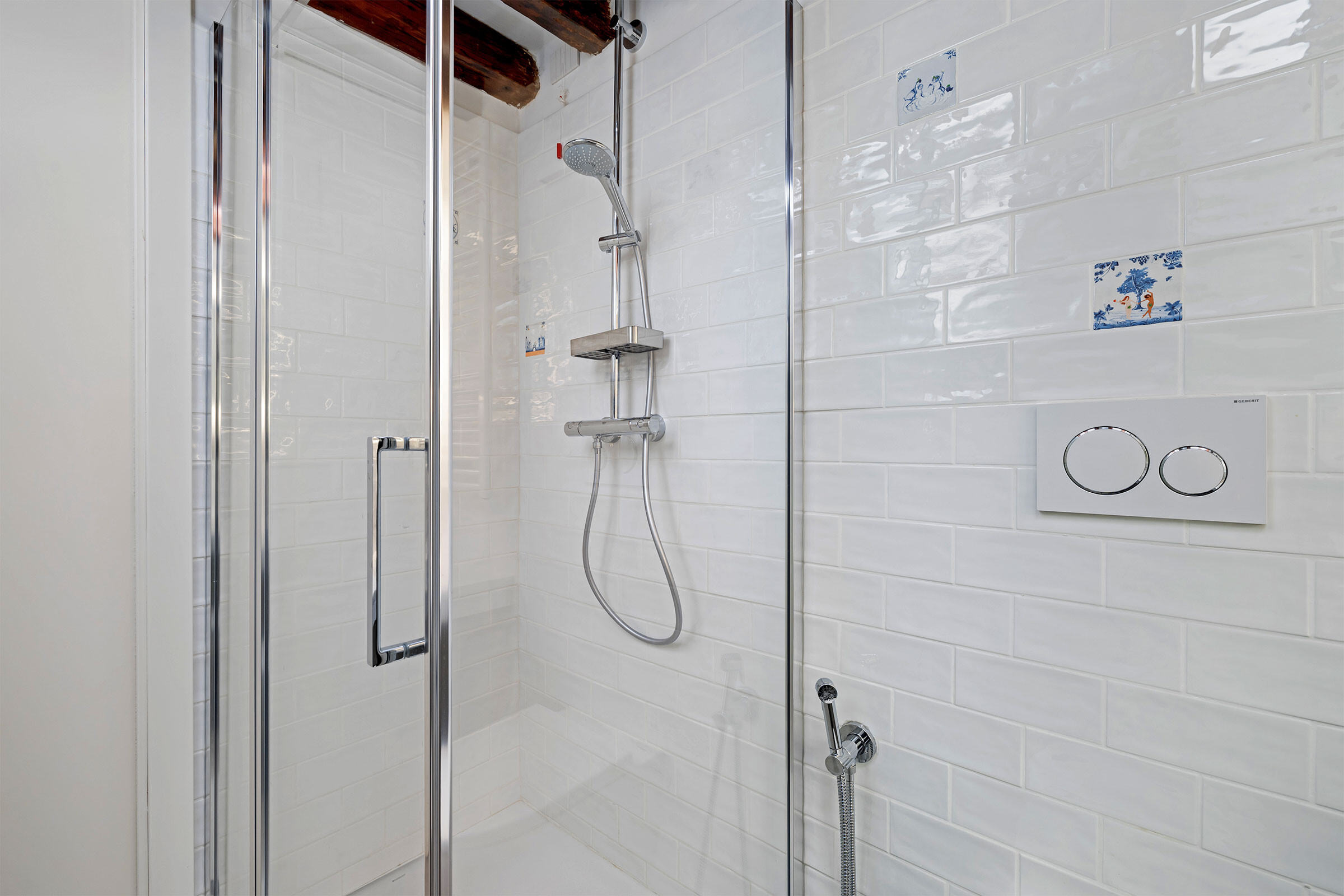 Design lovers will appreciate the carefully curated contemporary style interior design blended with some old-school charm, such as antique wooden beams, terrazzo Veneziano flooring and stone old stone portals.