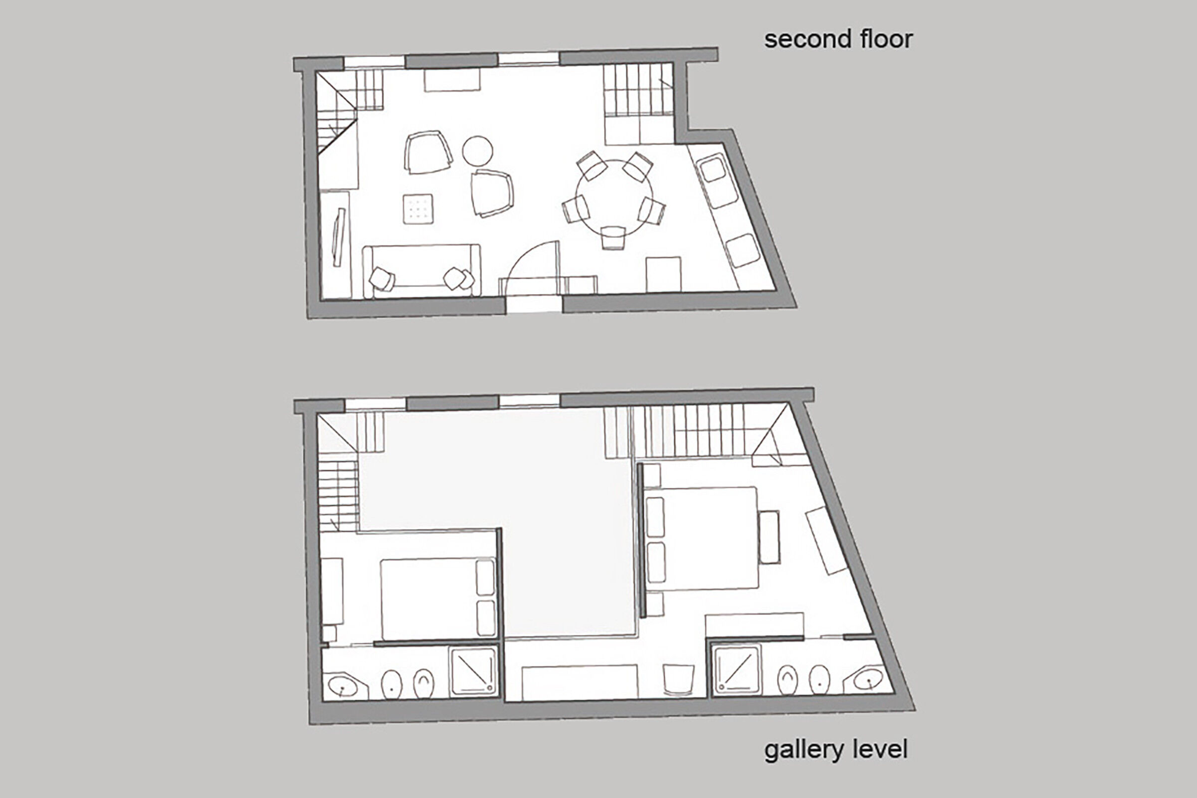 The structure is quite interesting: as you can see from the photo gallery, the authentic 5 meters tall ceiling is one of the most beautiful in our portfolio, witnessing the opulence of the past centuries. The entire house is an open space with two galleries, both reachable through wooden stairways and composed of a bedroom with closet space and bathroom with shower. The beds sizes are respectively king (1.8 meters wide) and double (1.4 meters wide).