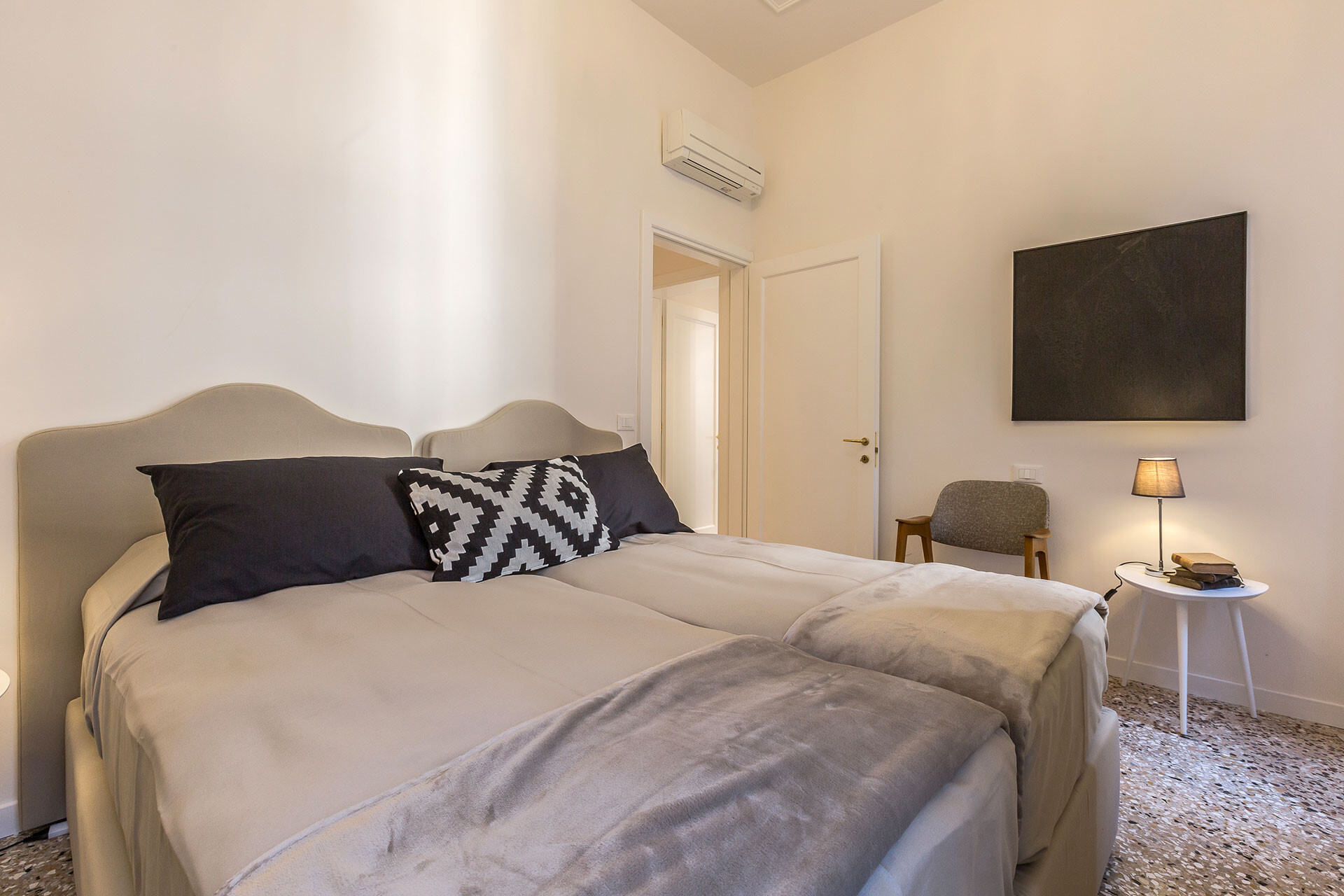 The Aida apartment, named after the well-known Opera from Giuseppe Verdi, which has been performed at the Fenice Theatre, is one of the 7 apartments available in this Palazzo and can be combined for example with the Traviata Apartment found door to door on the 2nd Floor, or with the Salomé studio and/or the Tosca apartment, both on the 1st floor.