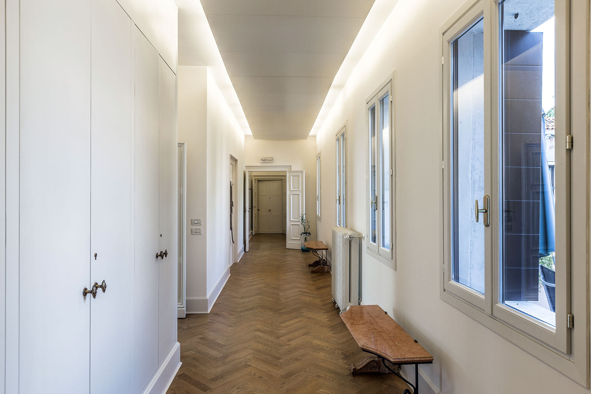 The entire property has been completely and luxuriously refurbished in 2013: the elevator has been installed, the original Venetian Terrazzo flooring renovated, frescoes and stuccoes brought back to the ancient splendour, the spacious terrace has been equipped with table, sunshade and sun chairs.