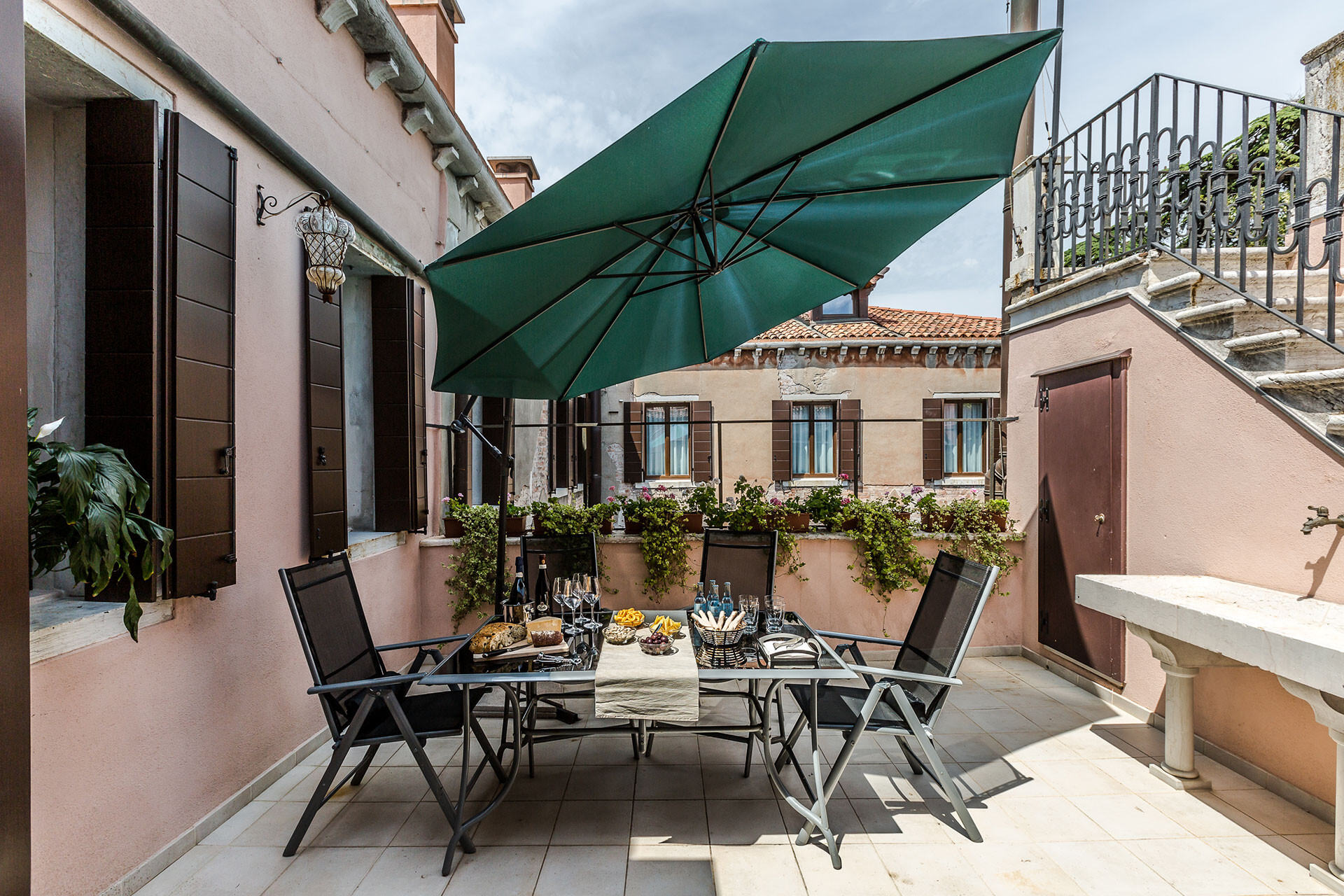 The entire property has been completely and luxuriously restored in 2013: an elevator has been installed, the original terrazzo flooring repaired, frescoes and stuccoes brought back to the ancient splendour, the terrace equipped with table, sunshade and sun chairs.