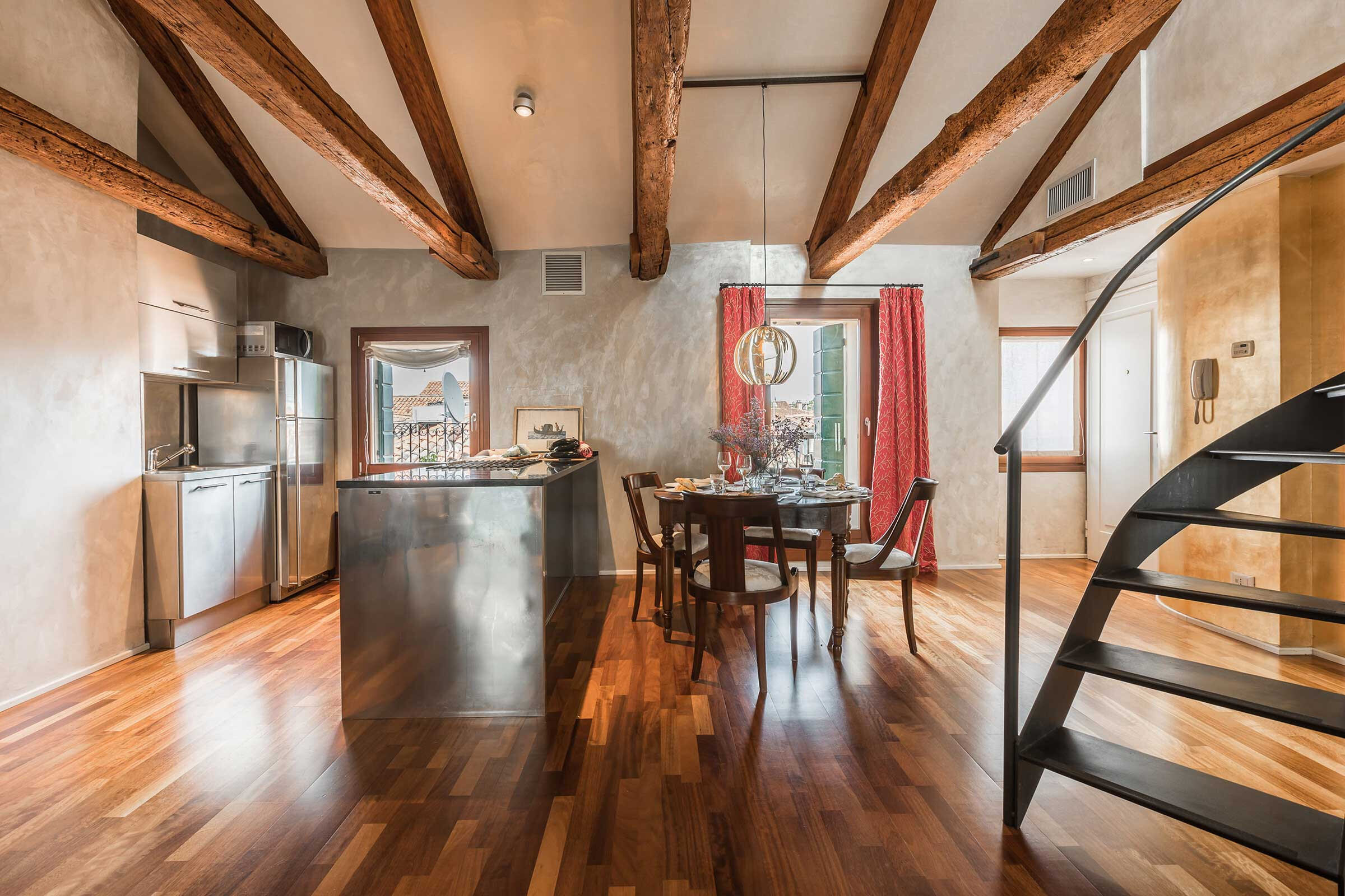 Please mind that the open space staircase is not suitable for children below 4 years old unless they are used to such stairs. The apartment is not recommended for people with limited mobility, as the last part of the stairway is quite steep. The Arsenale Terrace is perfect for a couple that wishes plenty of living space and comfort but it can comfortably host 3 people. It is full of light during all day and has everything you need for an unforgettable holiday. It truly makes you feel at home away from home!