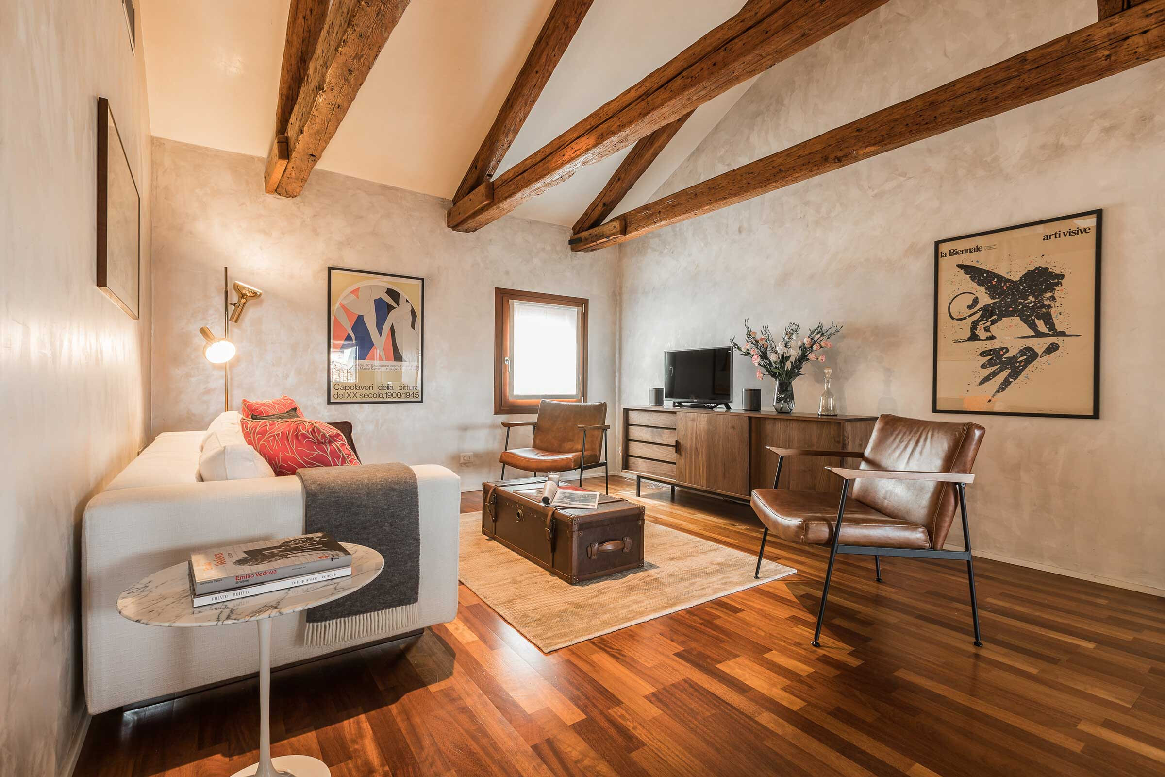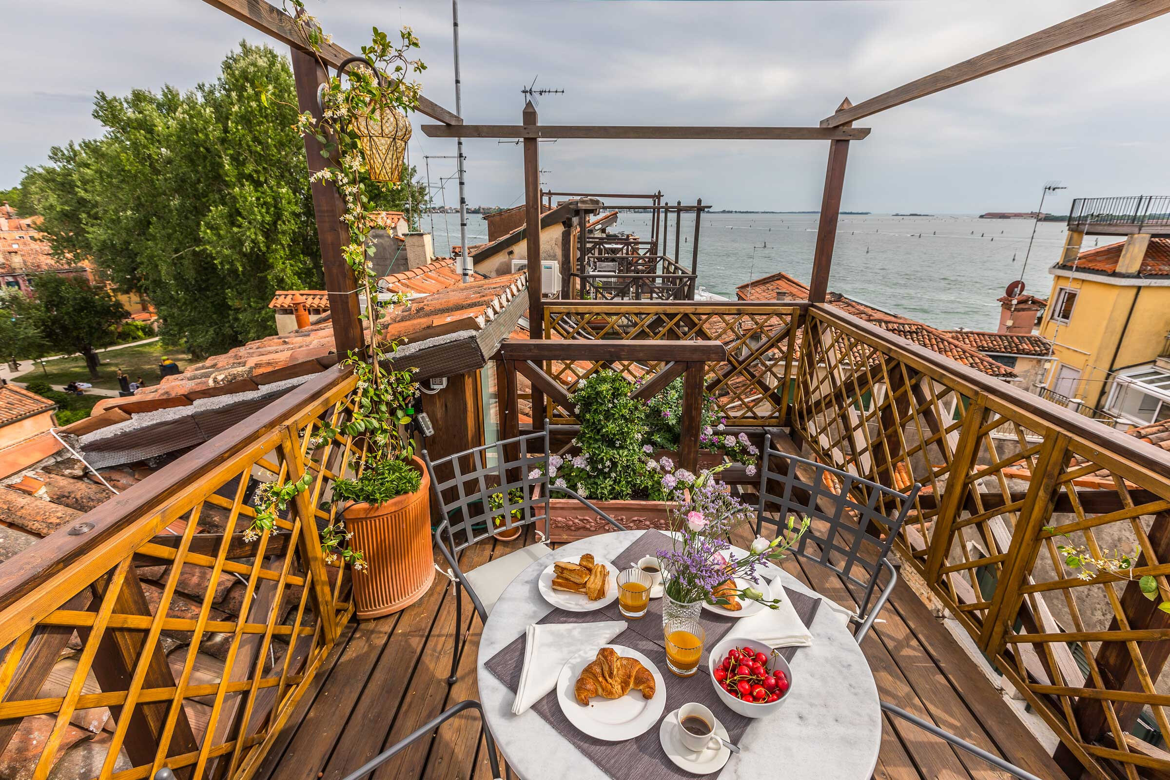 The Arsenale Terrace apartment features one of the most beautiful panoramic views on San Marco, San Giorgio and the Venetian Lagoon.