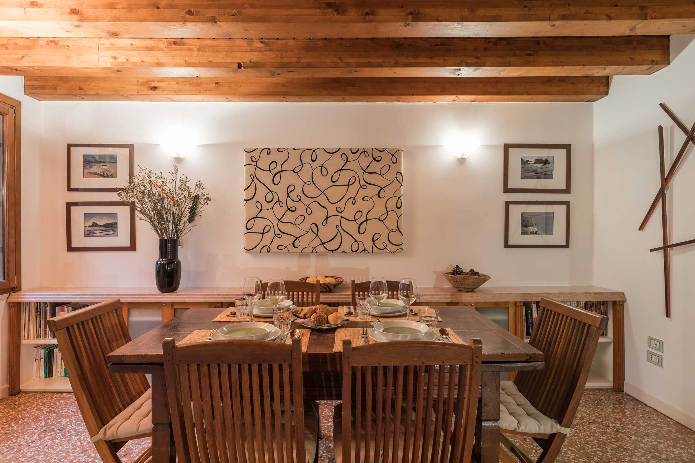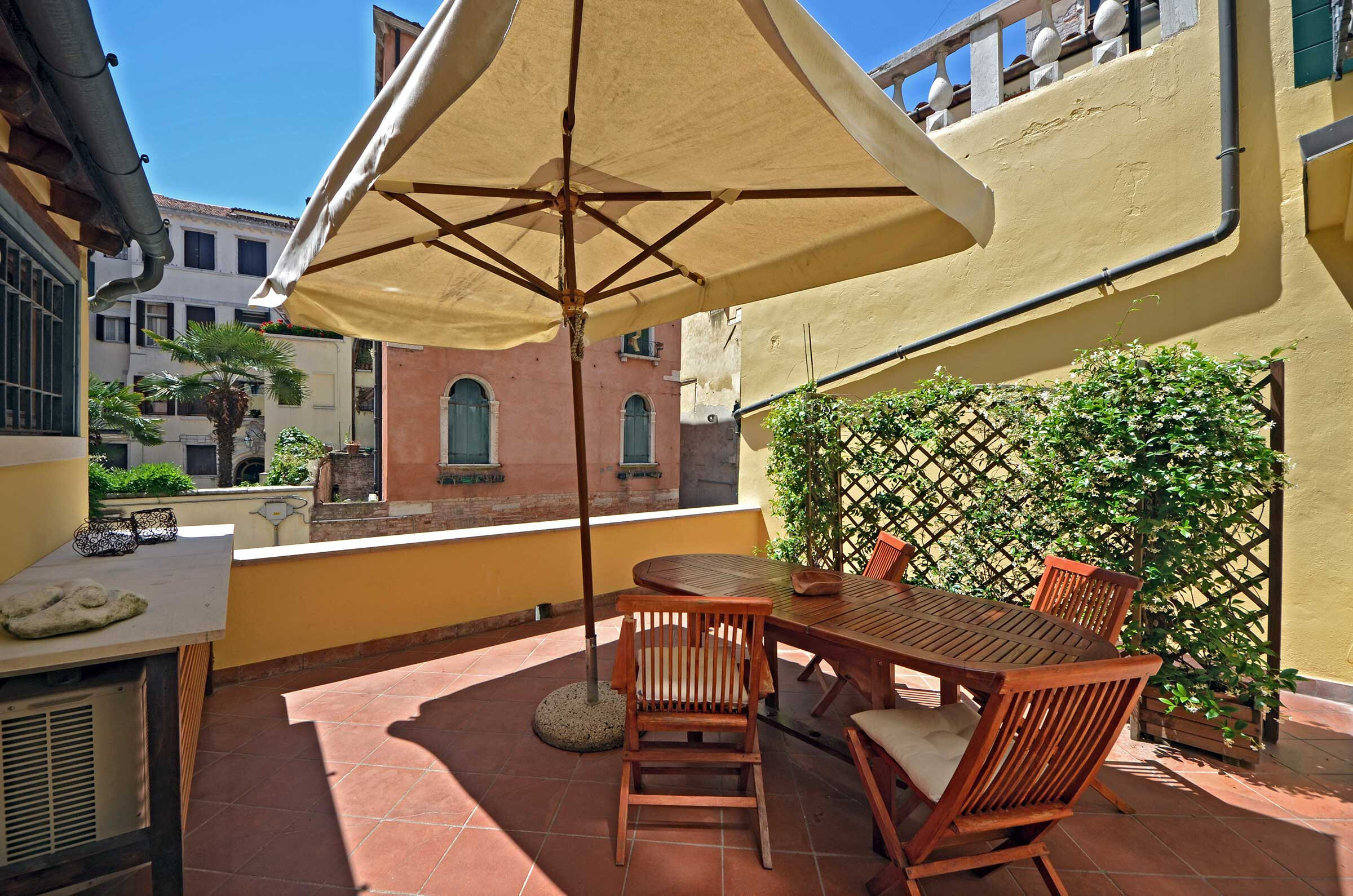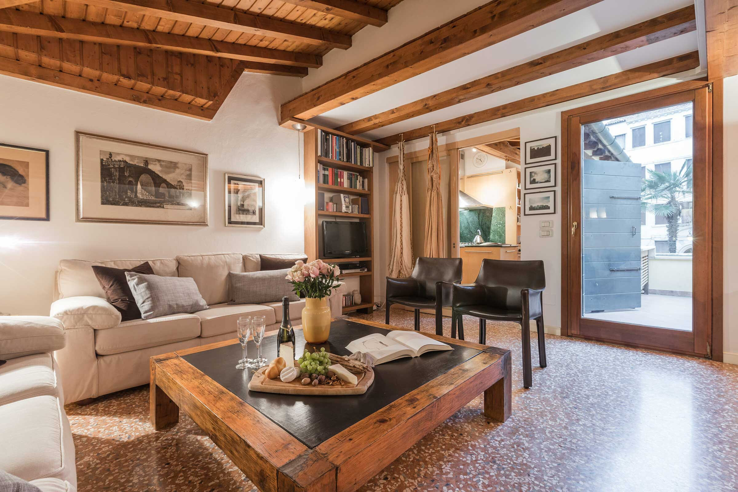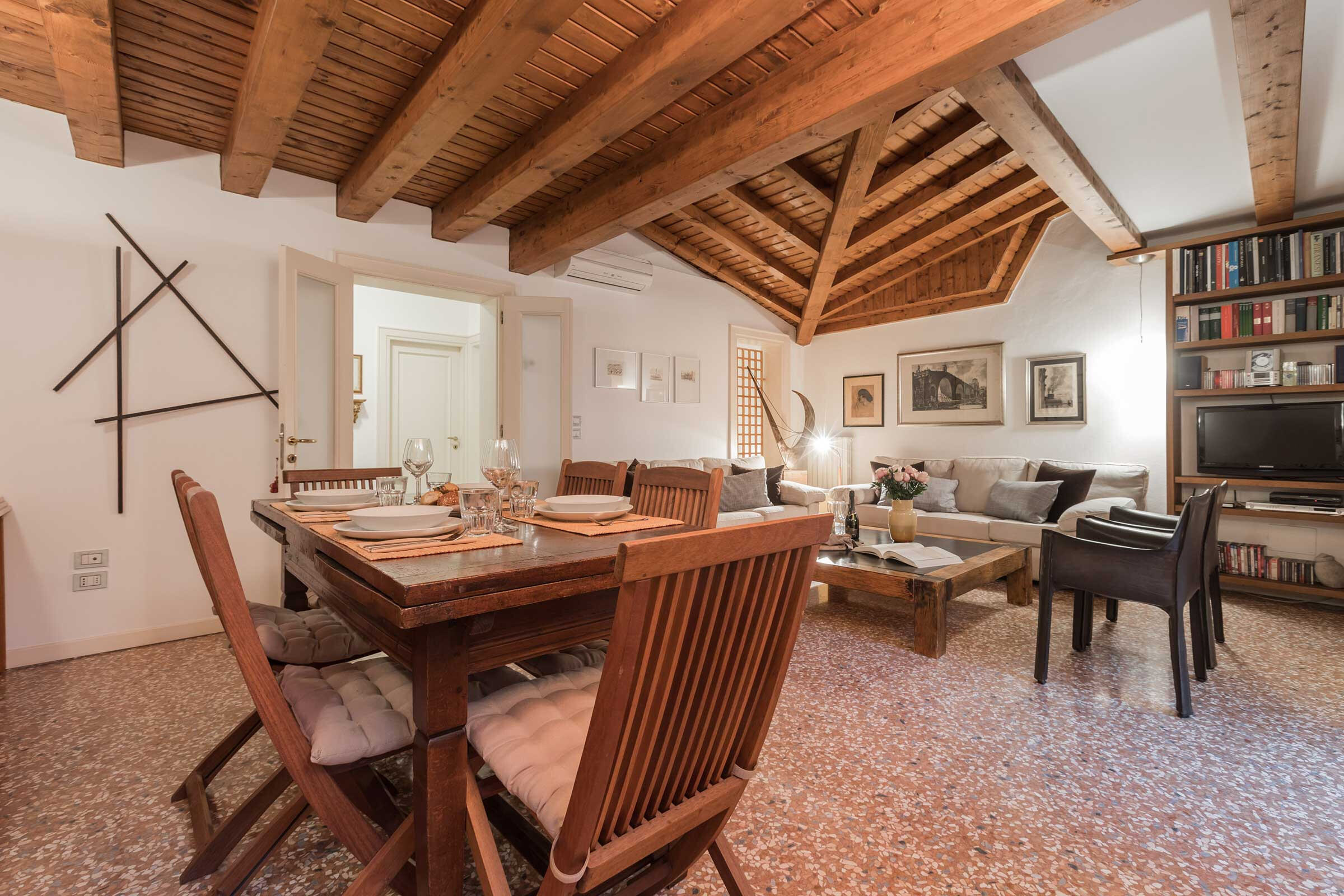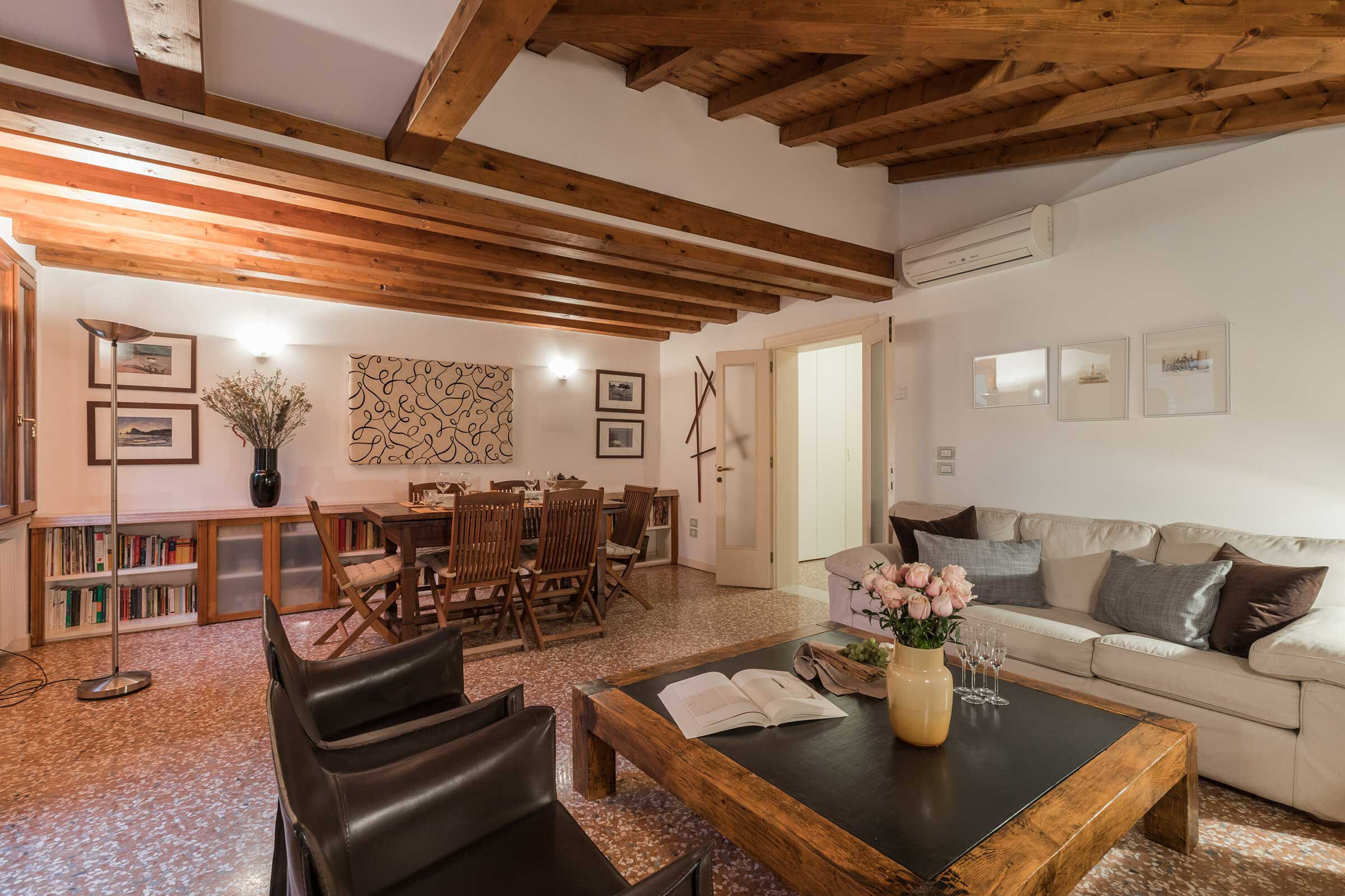It features all the most desirable characteristics that a visitor could want: a beautifully furnished and cosy living-dining room connected to a lovely terrace overlooking a picturesque canal, a fully equipped kitchen and two comfortable double bedrooms, in a central but quiet part of the San Marco District served by public transport and plenty of good restaurants, bars and shops.