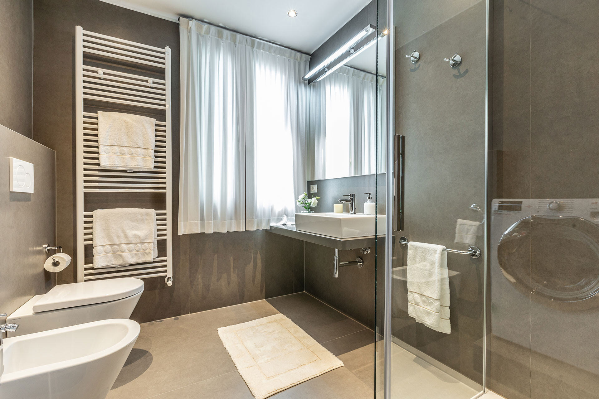 Every room is equipped with an efficient air-conditioning system and there is climate-controlled heating, Wi-Fi internet connection and there is a Smart TV in the living room, beside the washing machine in the main bathroom.