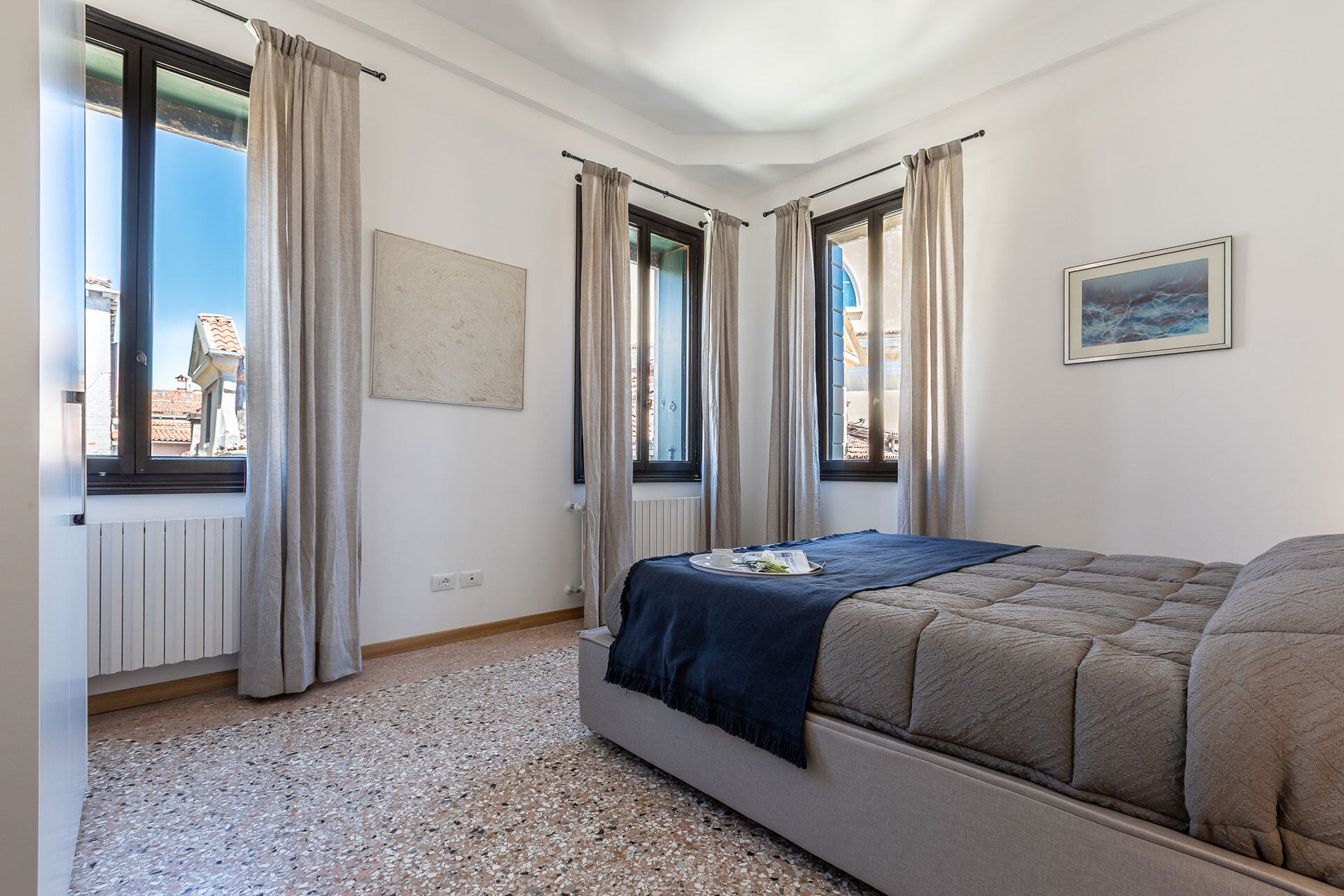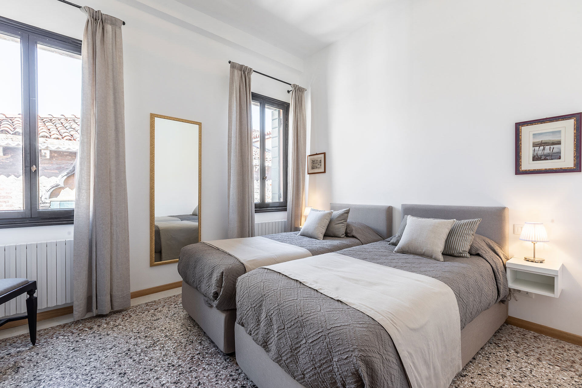 Beside the location and the superb interior design, the highlight of the Carmen apartment is in fact the picturesque canal views that can be enjoyed from the living room and bedrooms: looking out the windows you can see gondolas gliding by on the calm emerald waters.