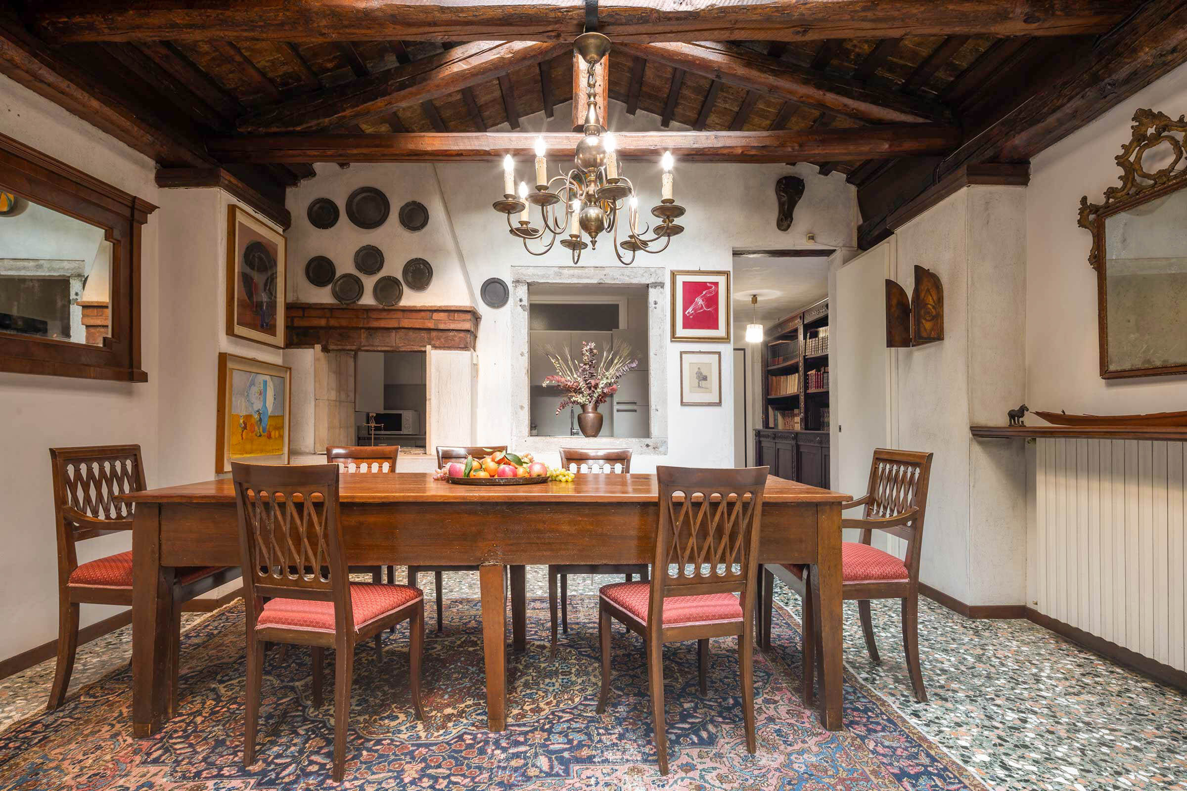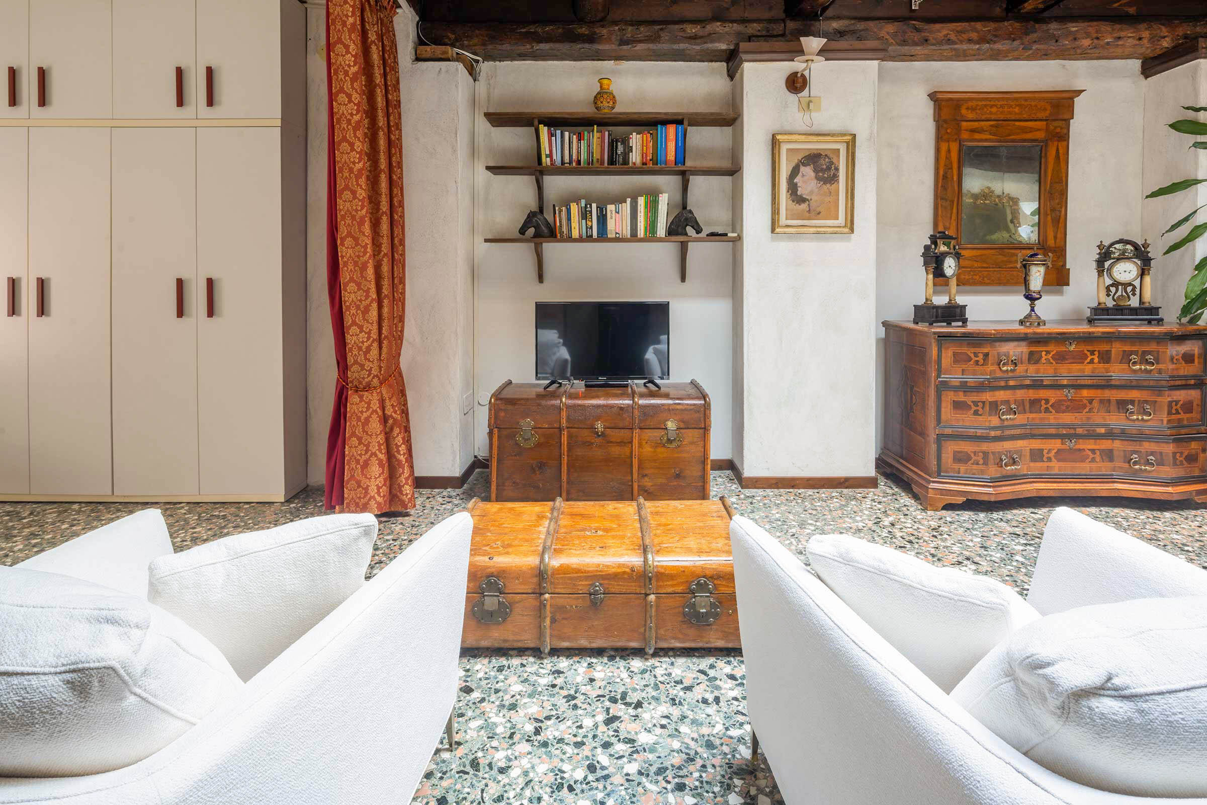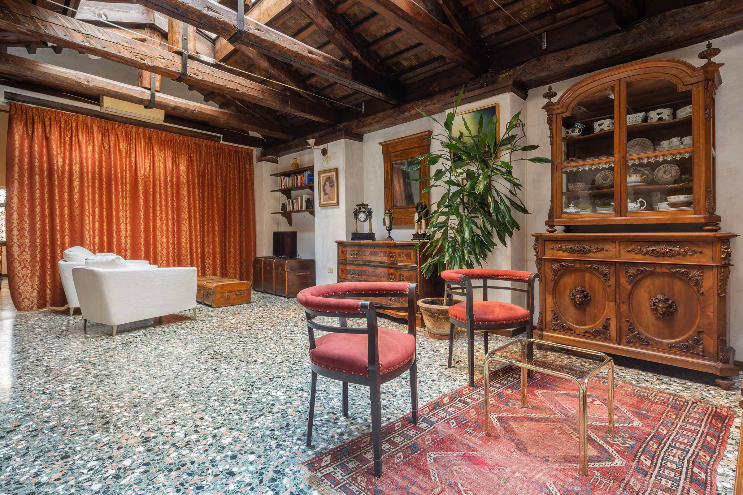 Once upon a time a Squero (boat yard) it has been converted in a charming historic apartment characterized by a long and spacious living area (boat construction required large open space) fitted with fascinating antique furniture.
