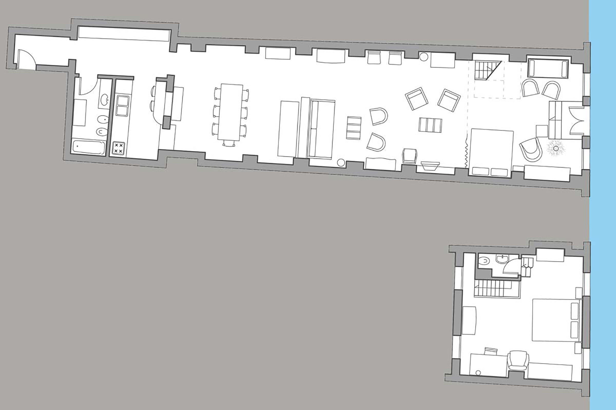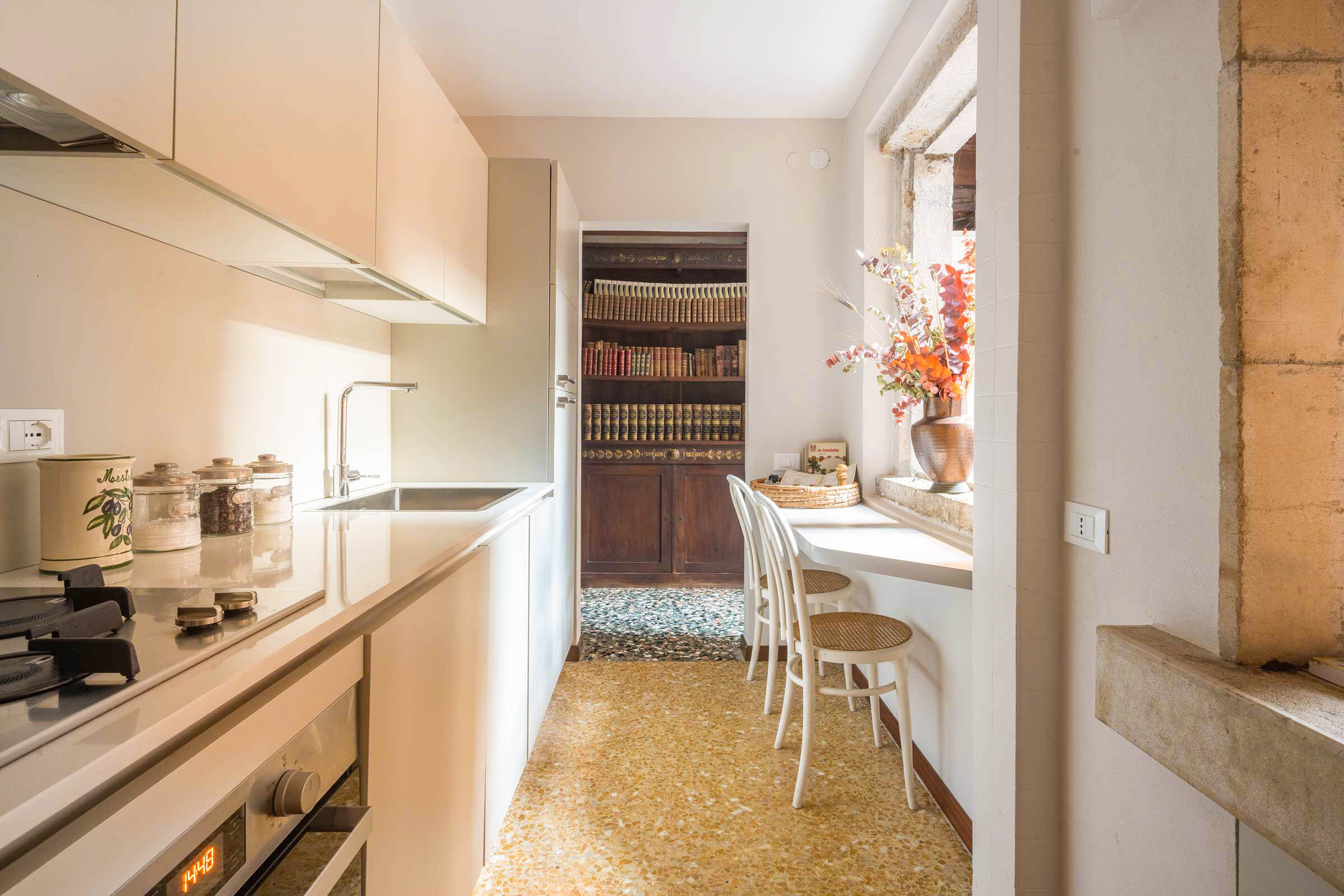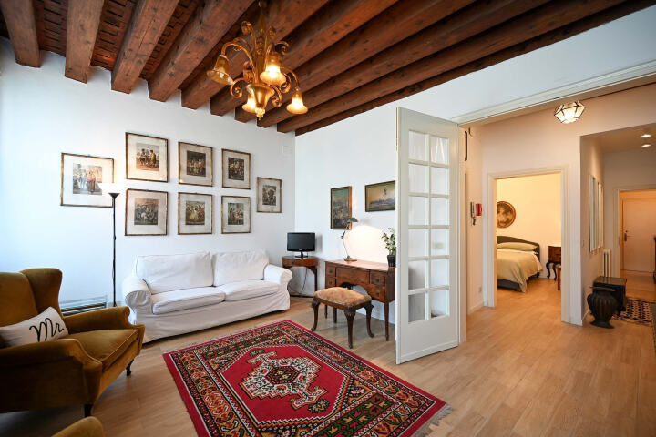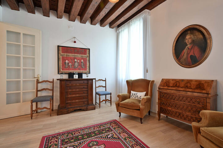 Once upon a time a Squero (boat yard) it has been converted in a charming historic apartment characterized by a long and spacious living area (boat construction required large open space) fitted with fascinating antique furniture.