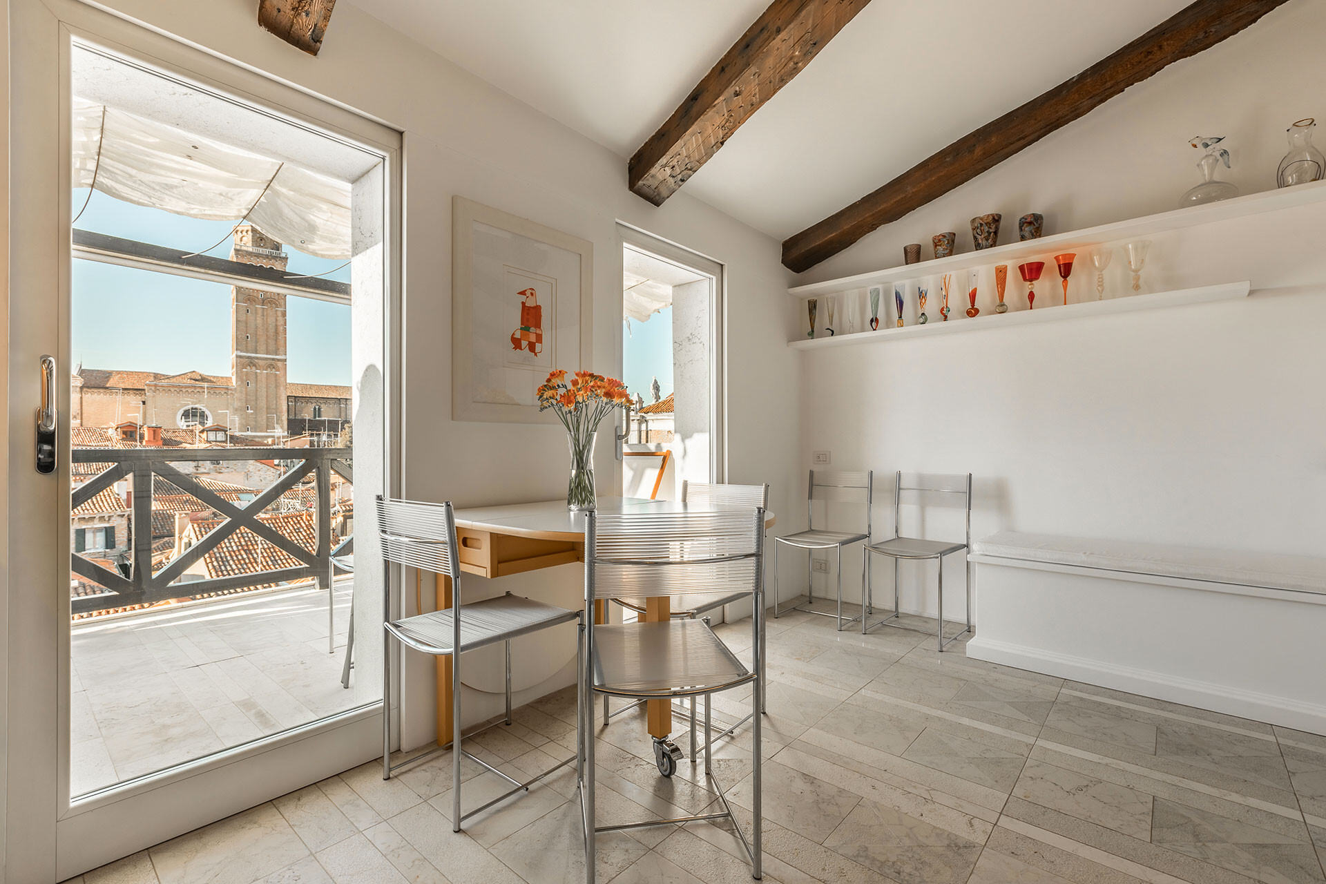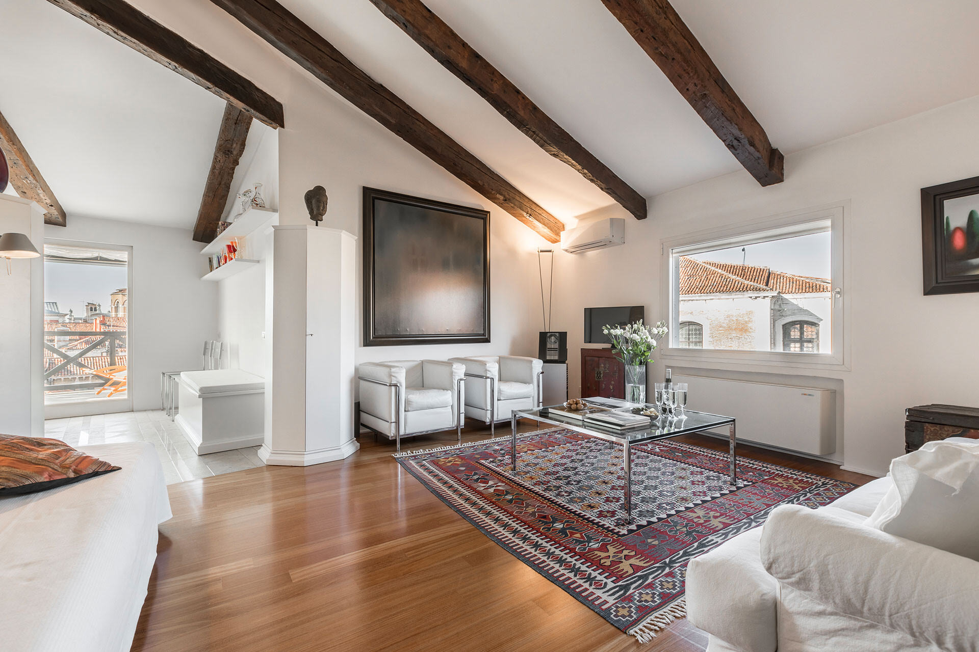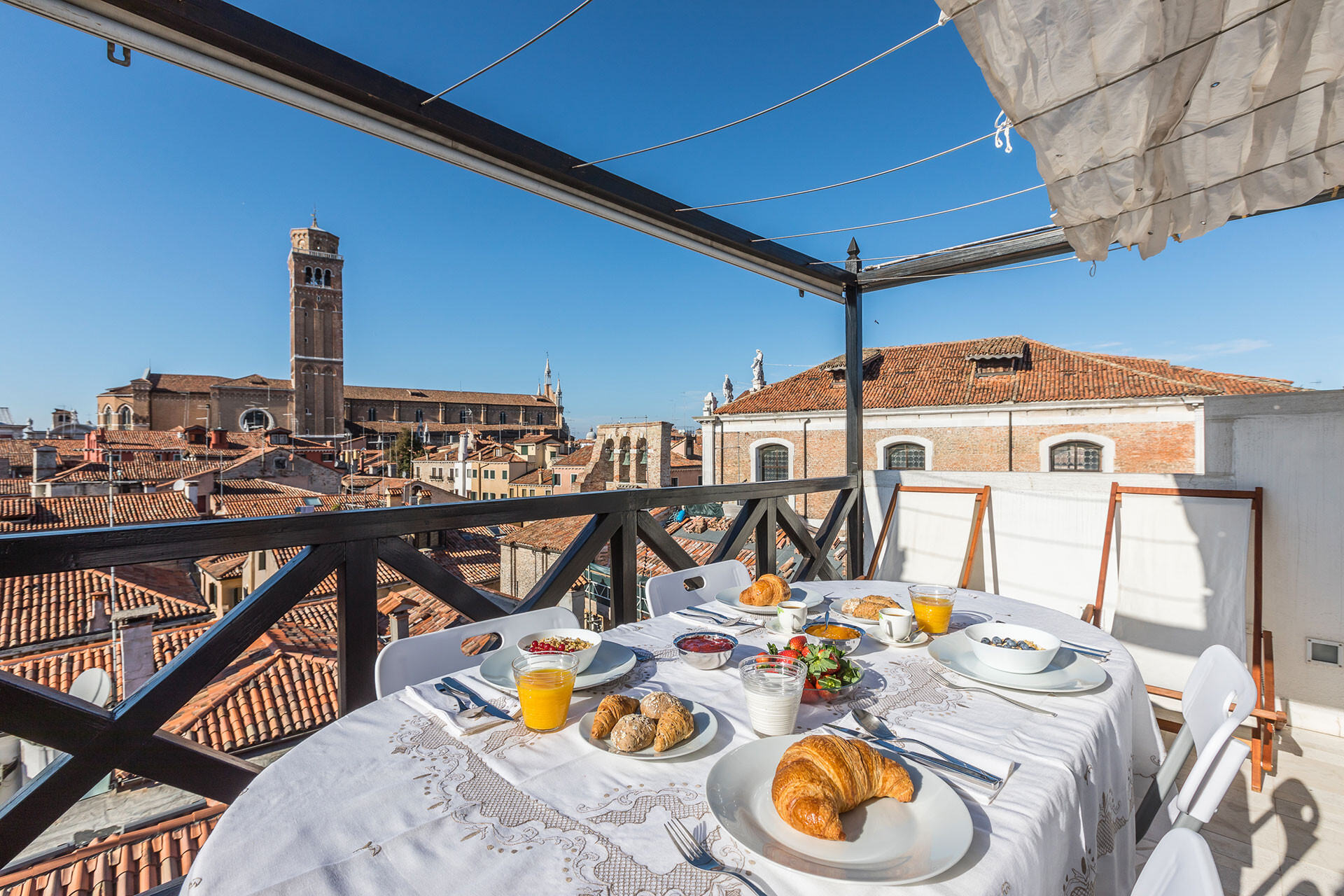 Bright and classy, the Dandolo apartment is perfect for a romantic couple: the luxurious interiors and the stunning panoramic terrace are truly unique. Enjoy the roof-top view of the historic centre of Venice in total privacy.