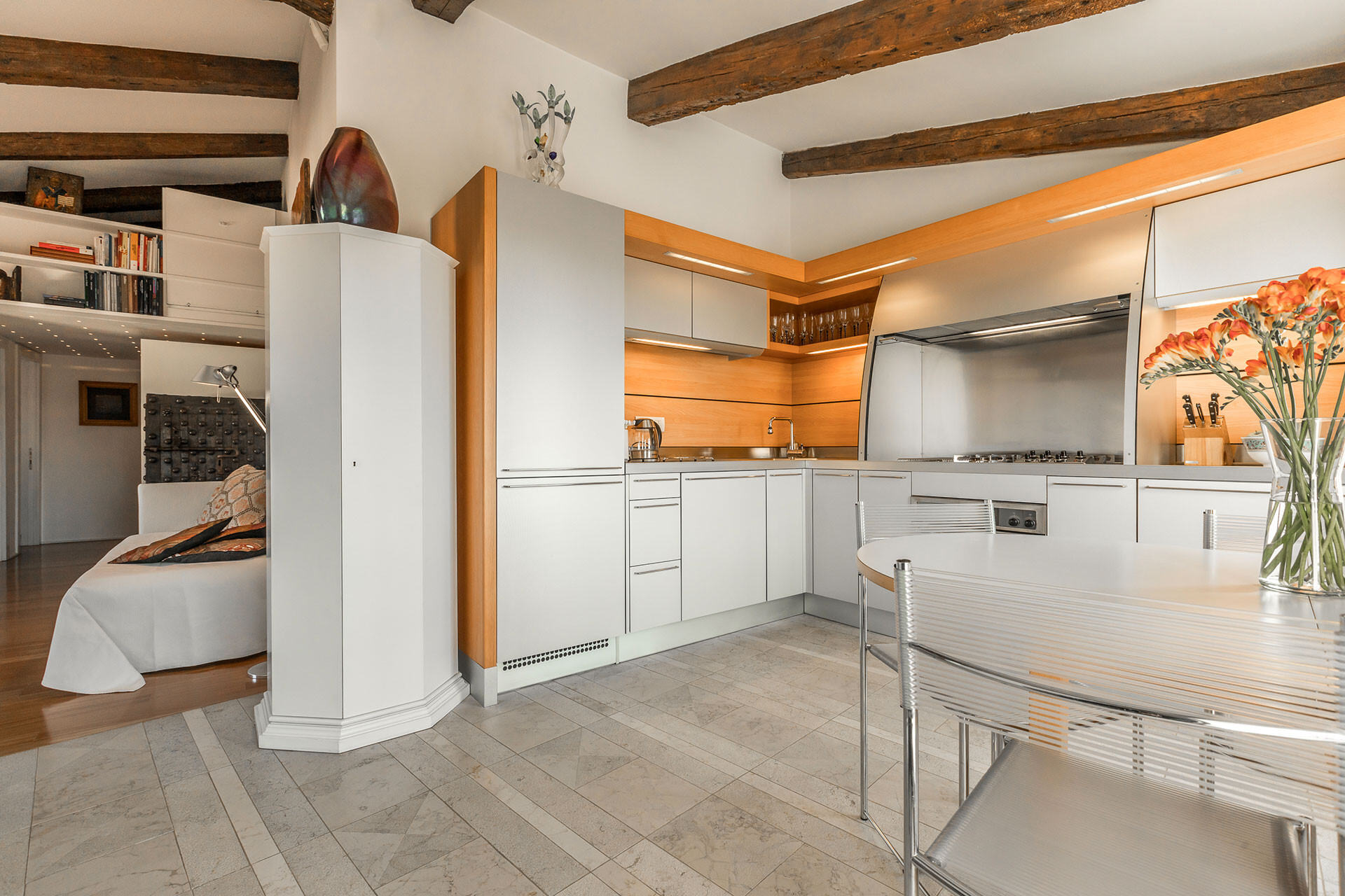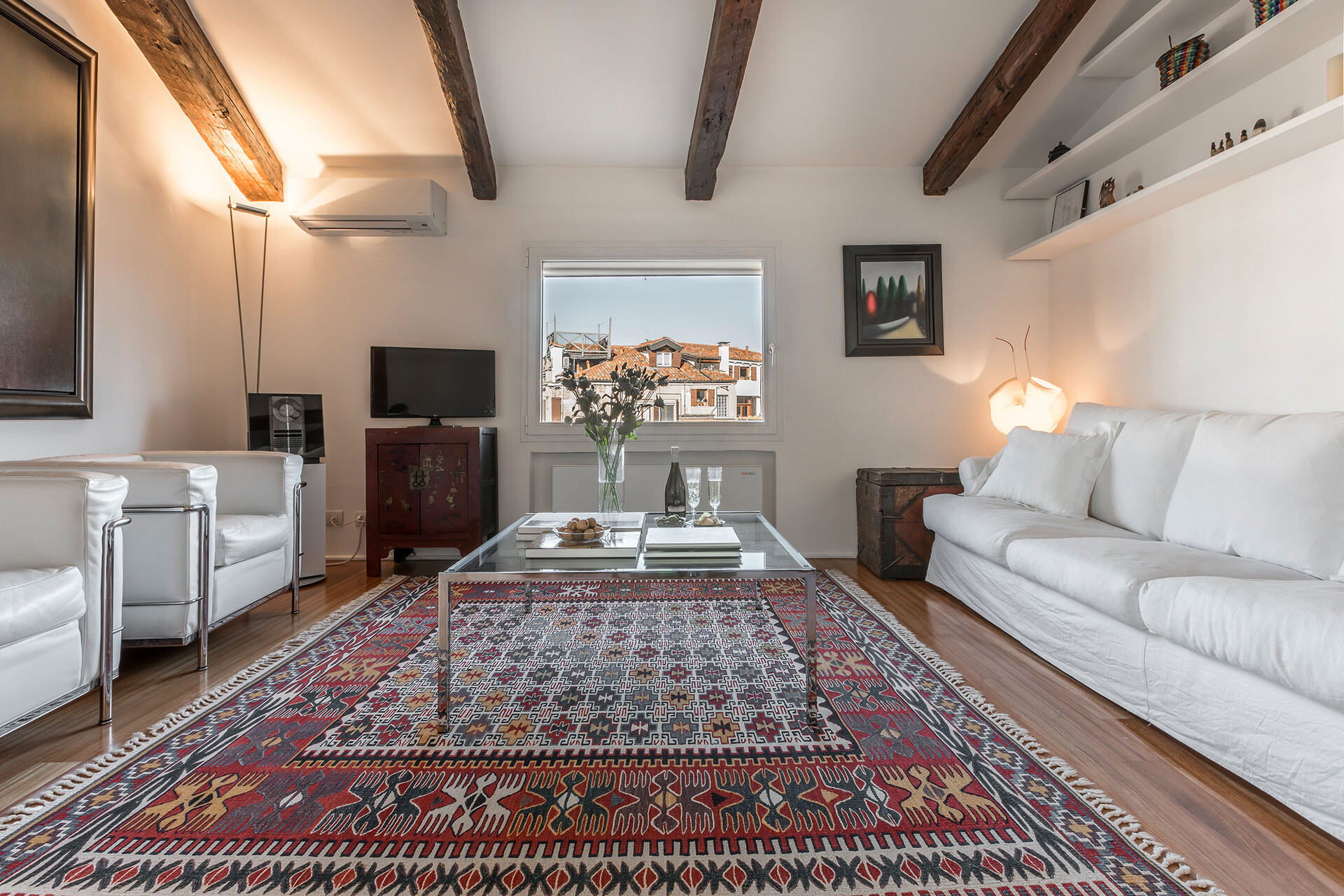 It is a fourth floor of about 60 square meters, part of a perfectly restored historic building found few steps from the San Tomà Vaporetto stop on the Grand Canal, a spot adored by Venetians for its strategic position and quietness: in fact, it takes few minutes' walk to reach all the most important city landmarks. Just across the Grand Canal there is the San Marco District, while in the surroundings there are plenty of specialty shops and supermarkets, beside excellent restaurants and bars. The area is not too crowded but is very active both culturally and socially.