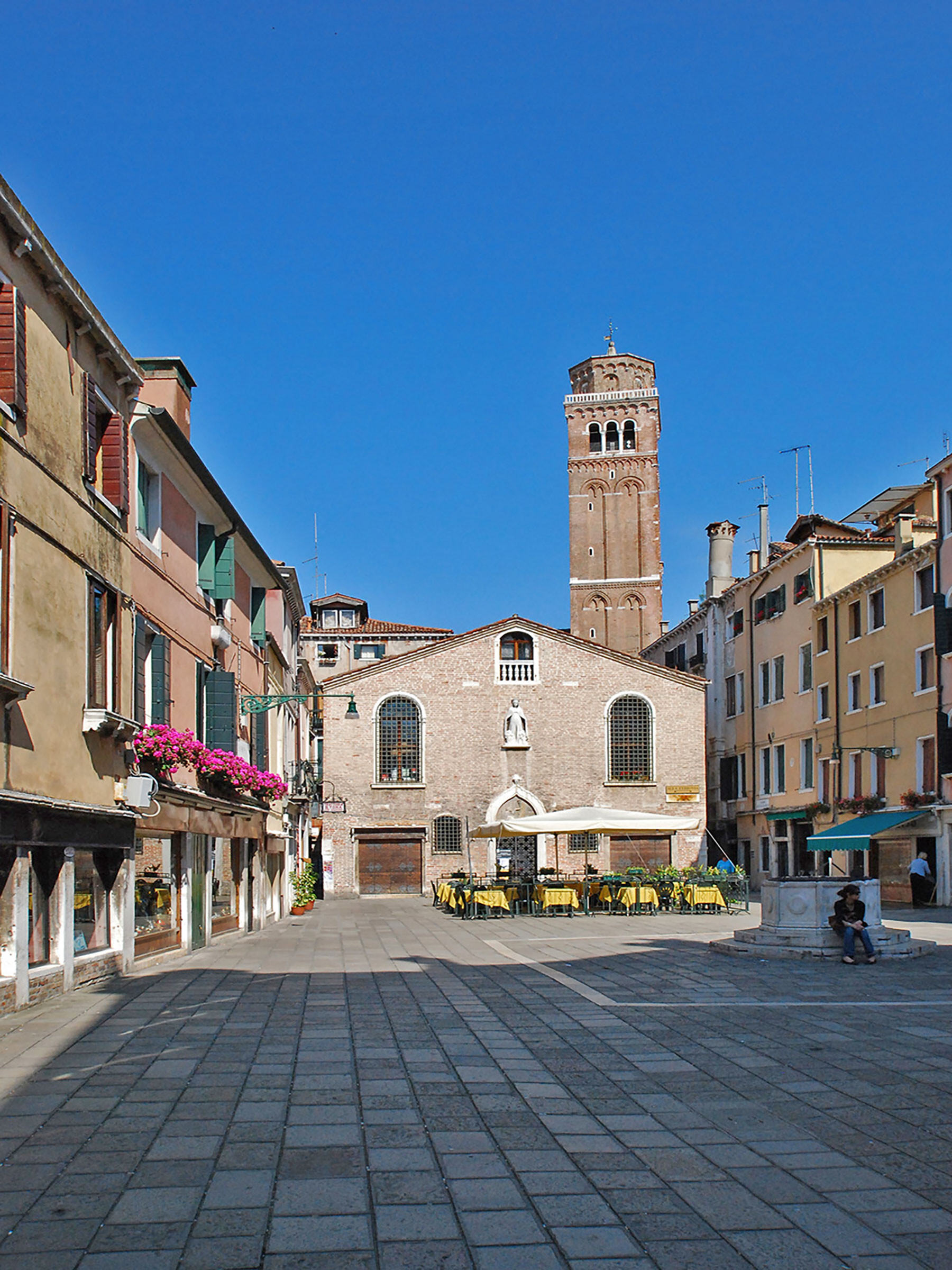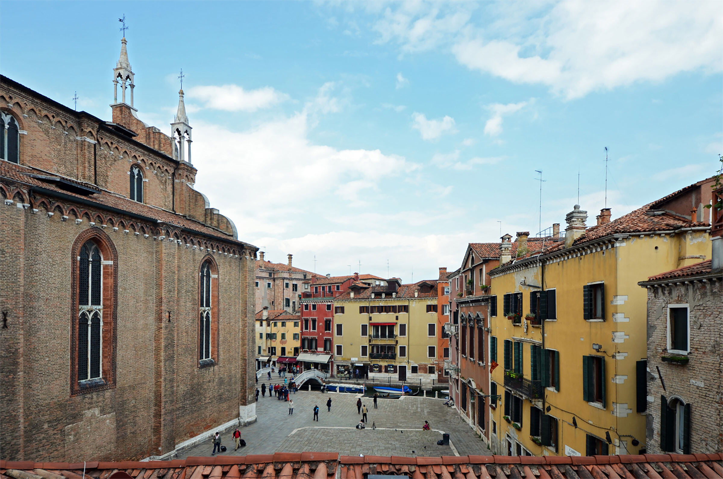 This spot gives you a great perspective onto the Frari Church on the left, one of the most important and ancient in Venice, and the historical buildings facing the Campo on the right. A typical Canaletto setting, one of the most picturesque you can find.