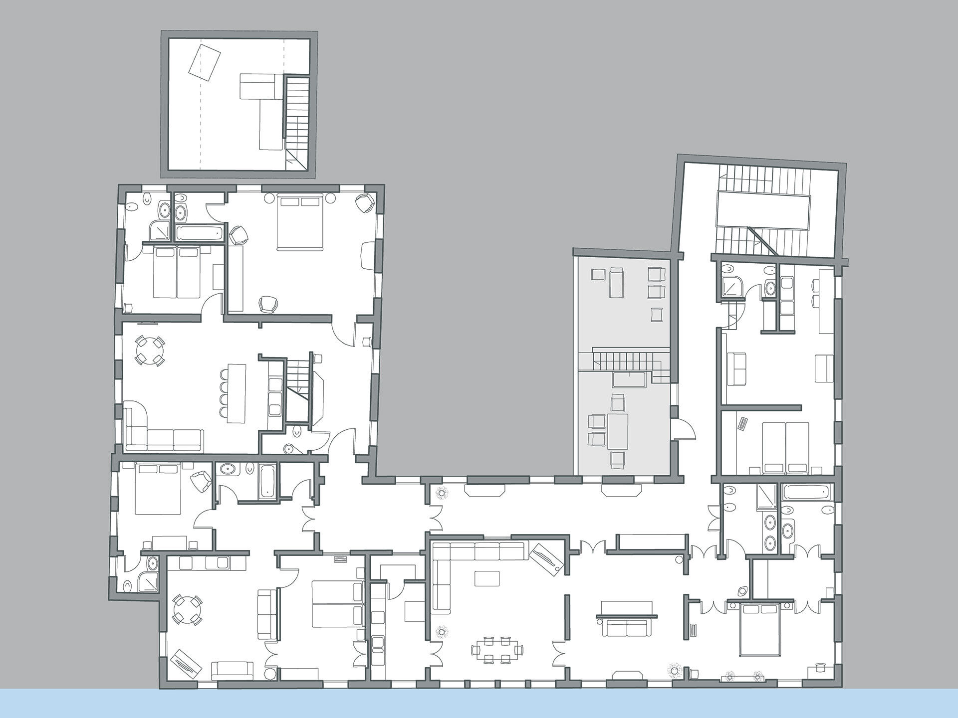 This combination of four apartments is the perfect accommodation solution for groups of up to 14 people.
