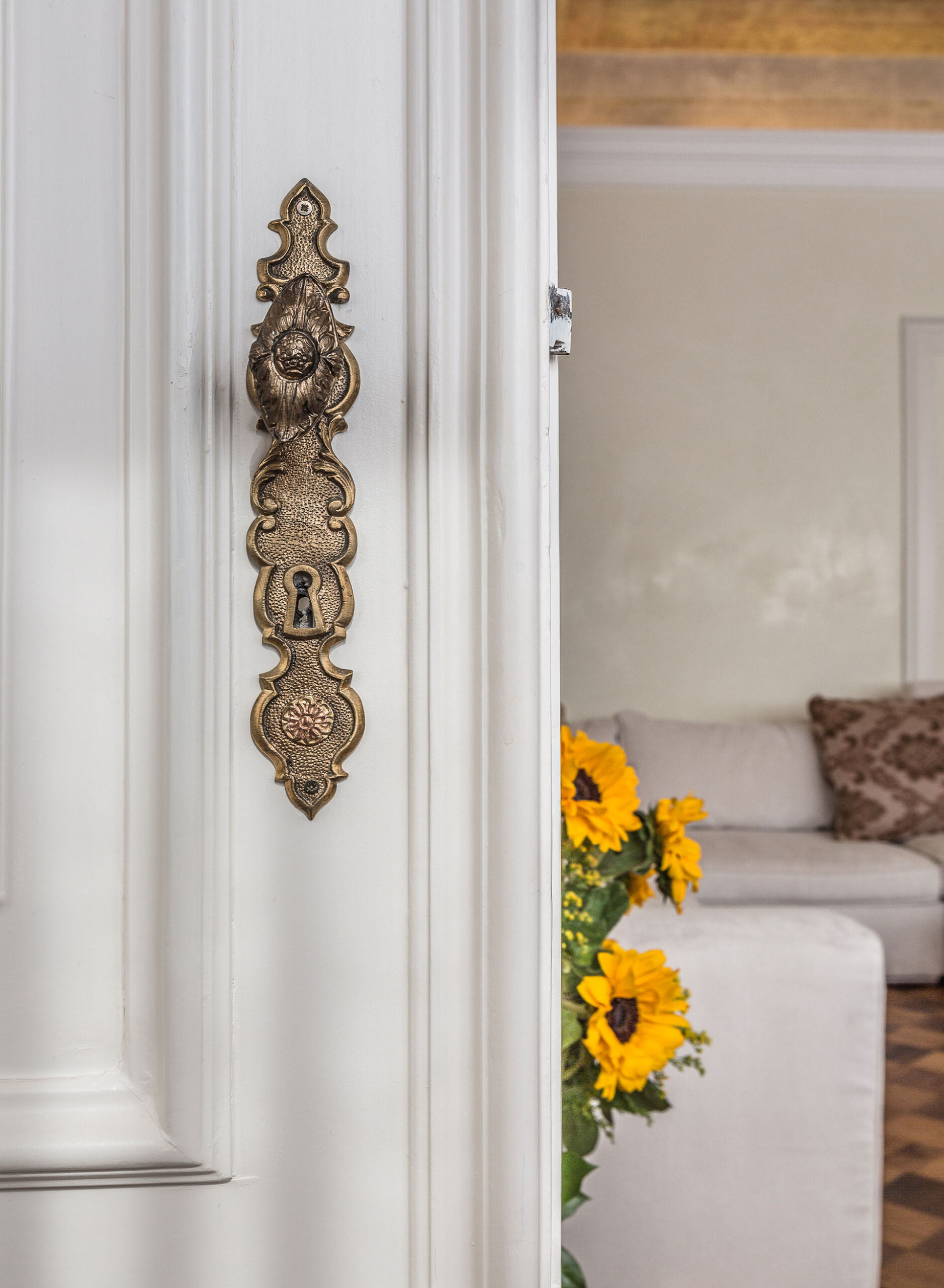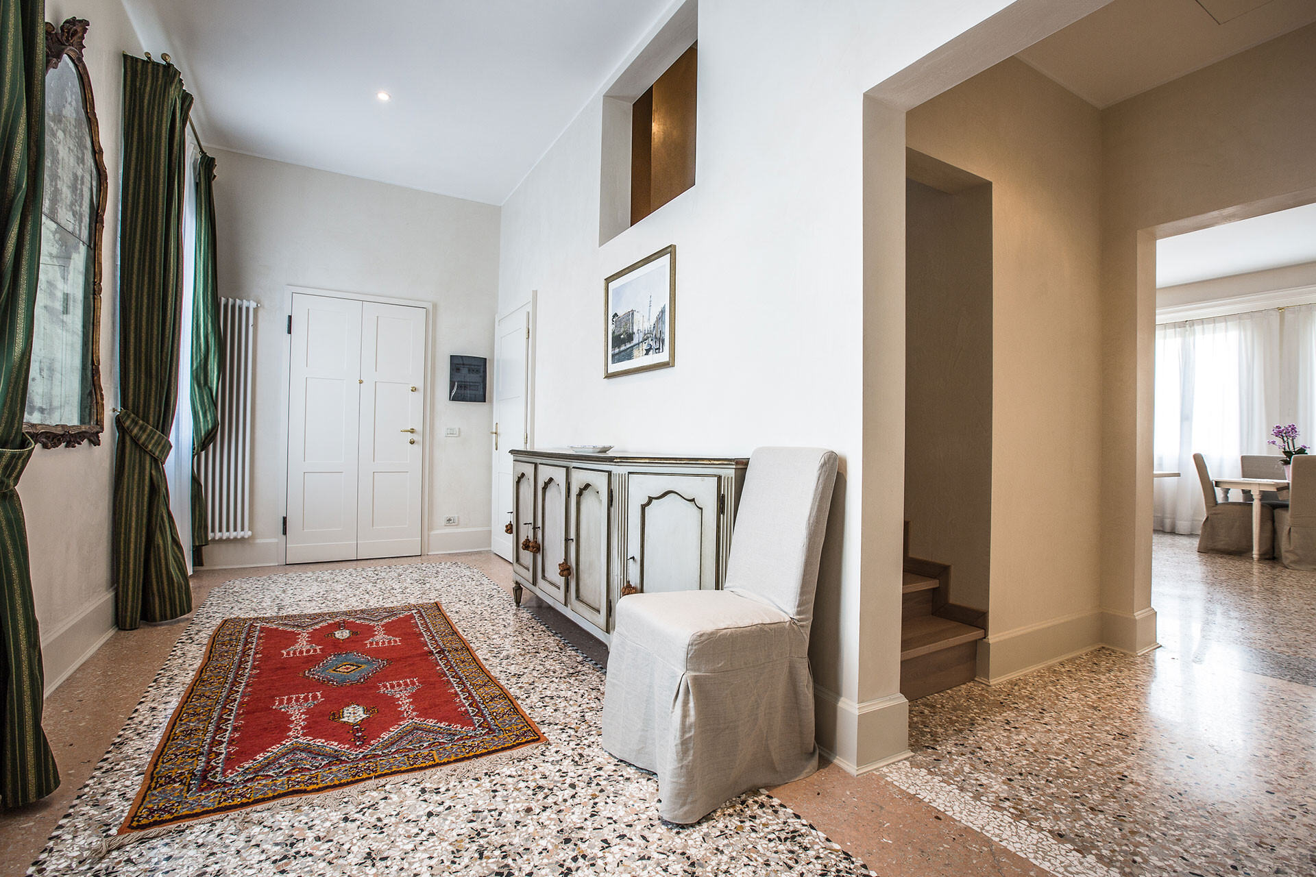 Beside installing the elevator, during the recent renovation the original terrazzo flooring and art-deco inspired inlaid parquet where fixed, frescoes and stuccoes brought back to the ancient splendour, the spacious terrace equipped with table, sunshade and sun chairs.