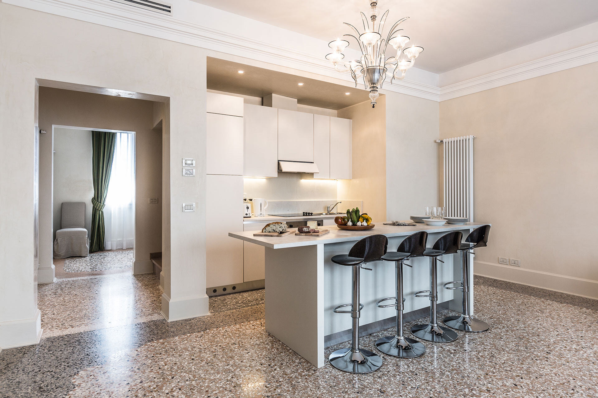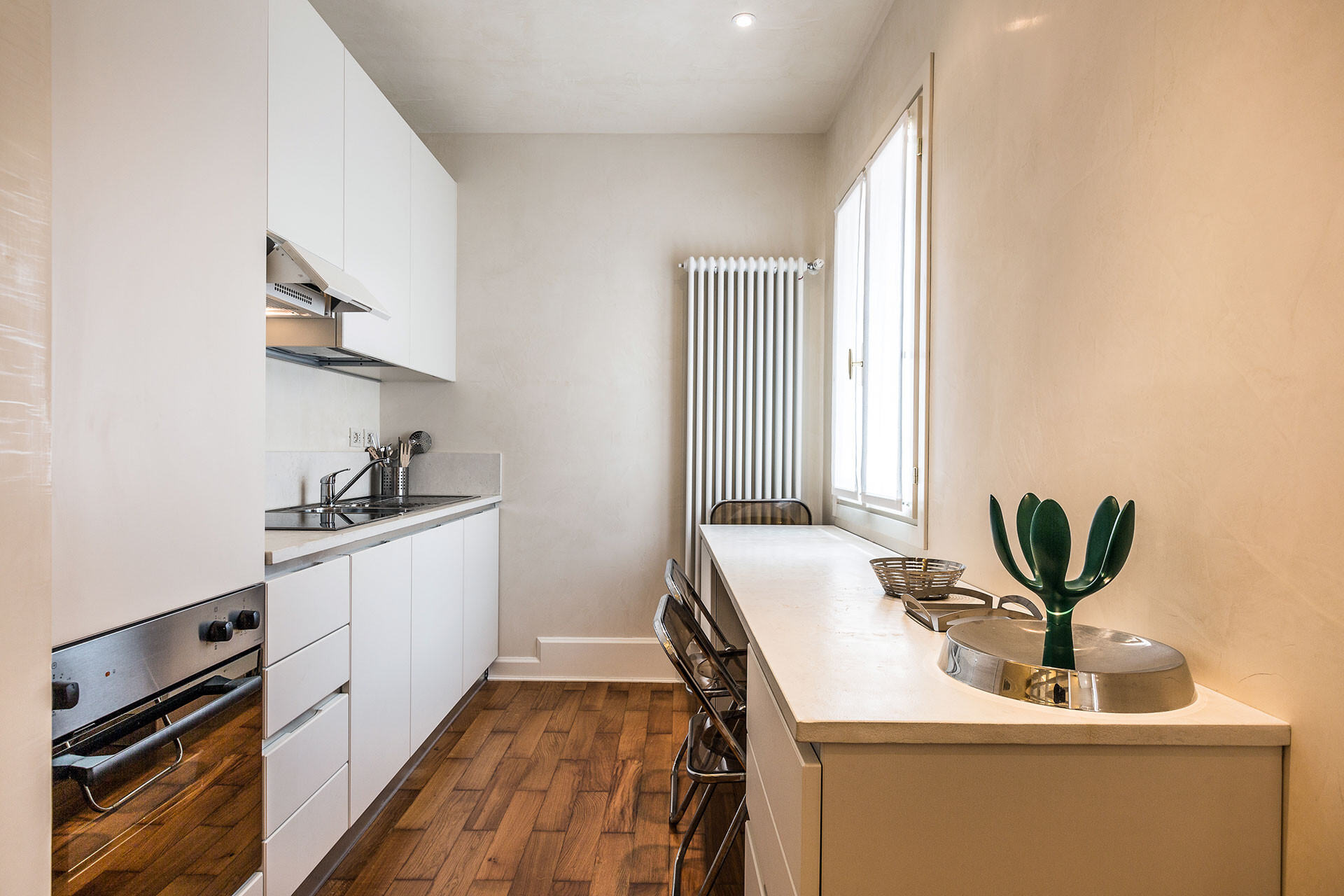 The Alighieri “C” has a living/dining room with stunning canal view overlooking Rio di San Lorenzo and a modern kitchen, plus two double/twin bedrooms with two excellent bathrooms, offering total comfort and privacy to 4 guests.
