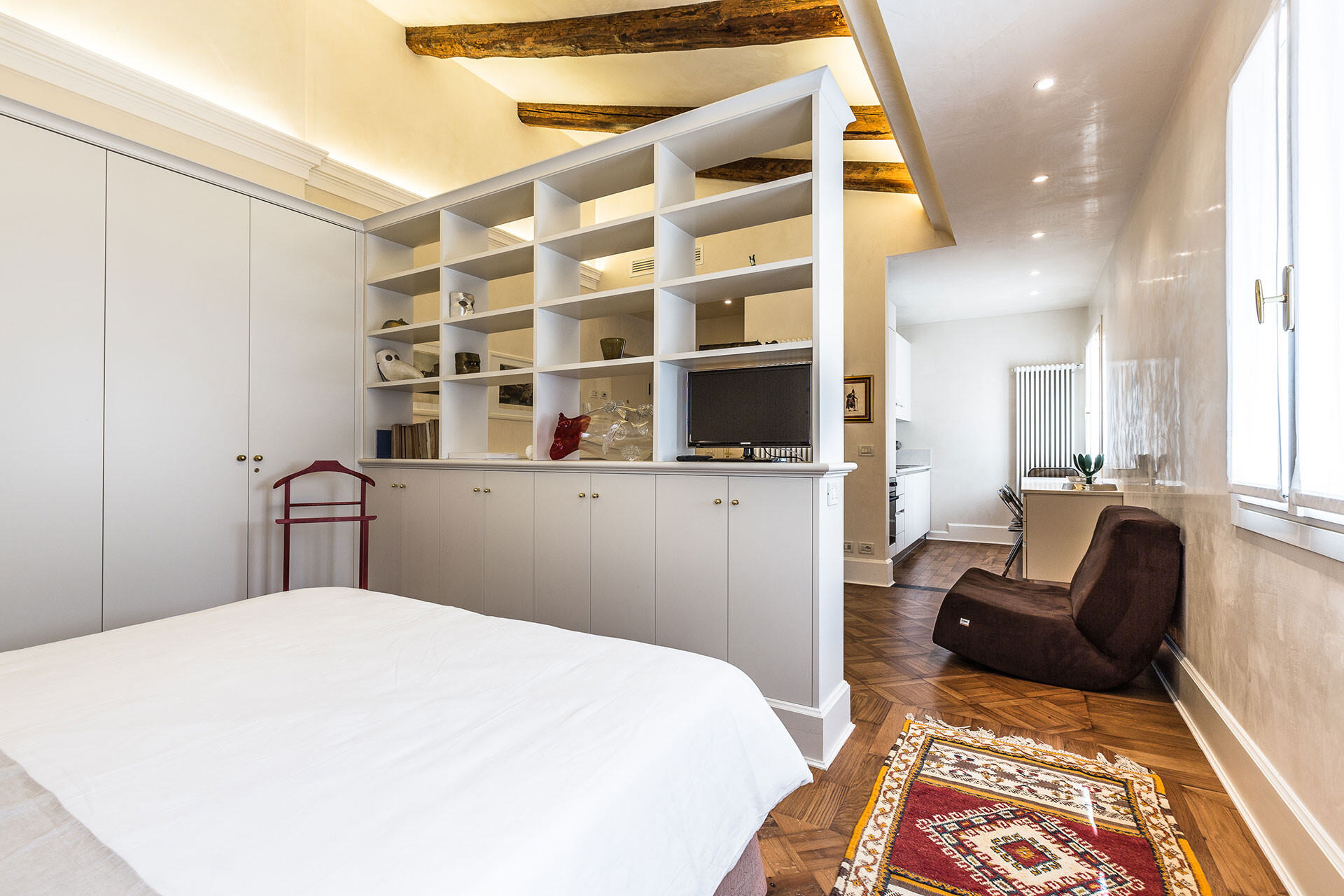 The Alighieri “A” is a charming studio apartment features a king size bed (composed two single beds that can be separated on request) a nice kitchenette and a small but well-designed marble bathroom with shower. Perfect for a couple.