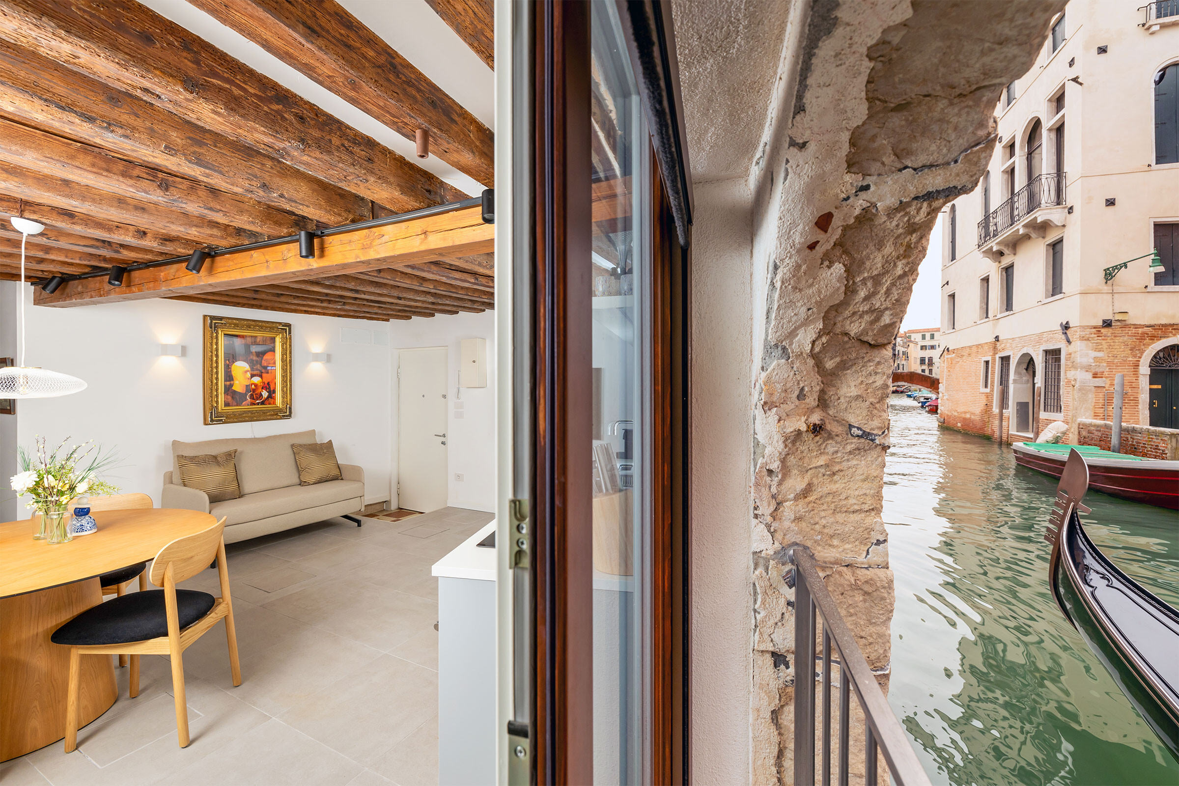 Enjoy your morning coffee while the gondolas glide past so close they are practically in the living room.
