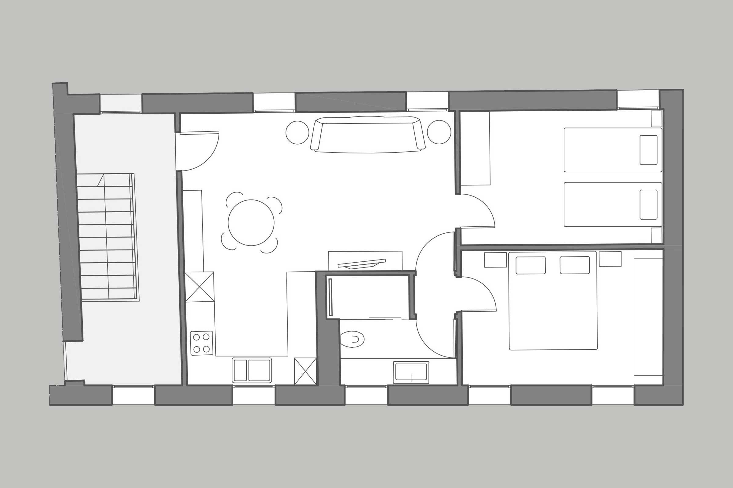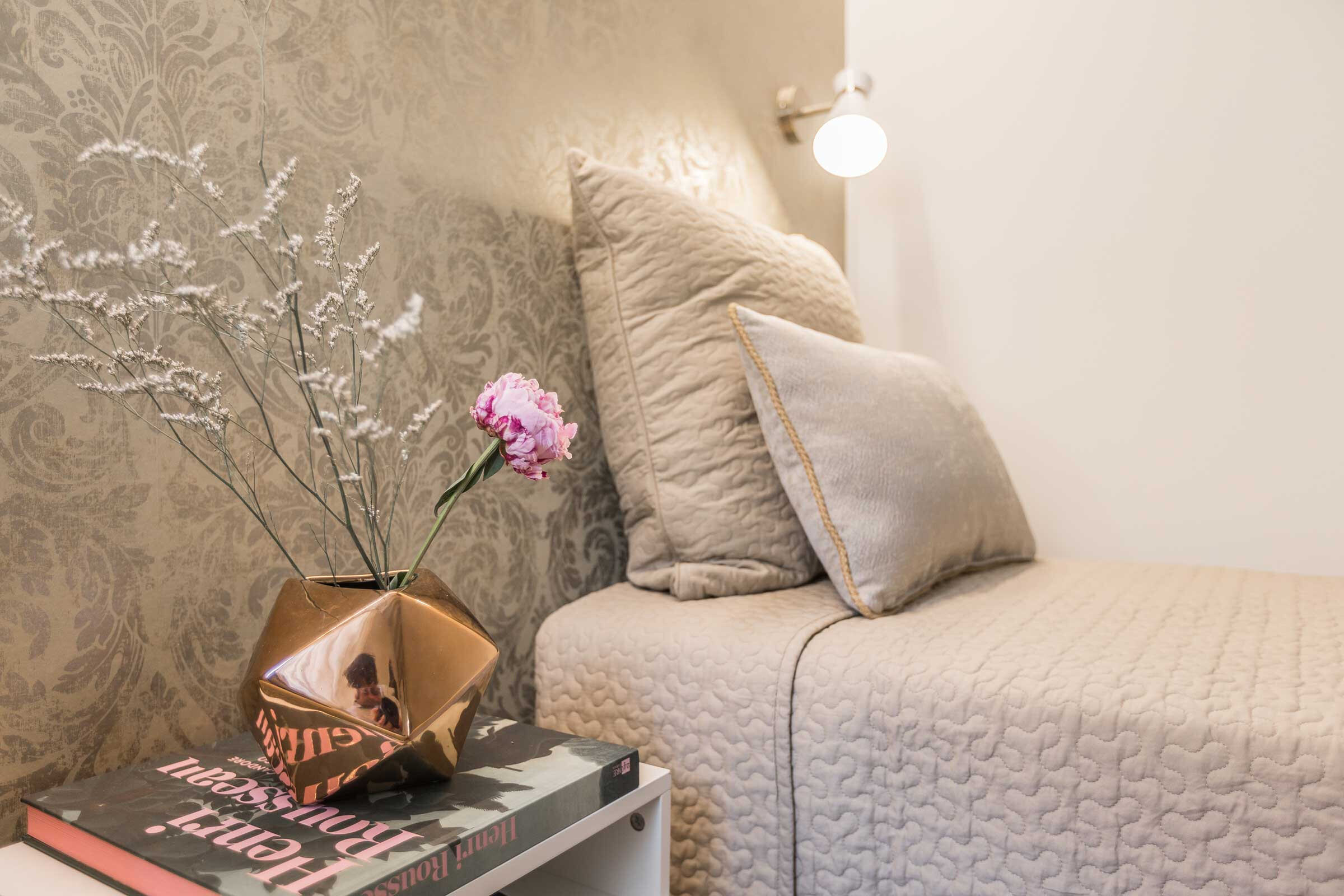 Occupying the top floor of a three-storey building, guests enter a serene living/dining area with an open fully equipped brand-new kitchen. Soft lighting and contemporary decor enhance the comfort of this petite apartment (60 square meters).