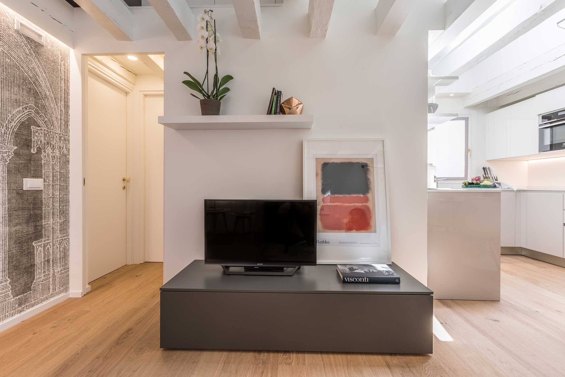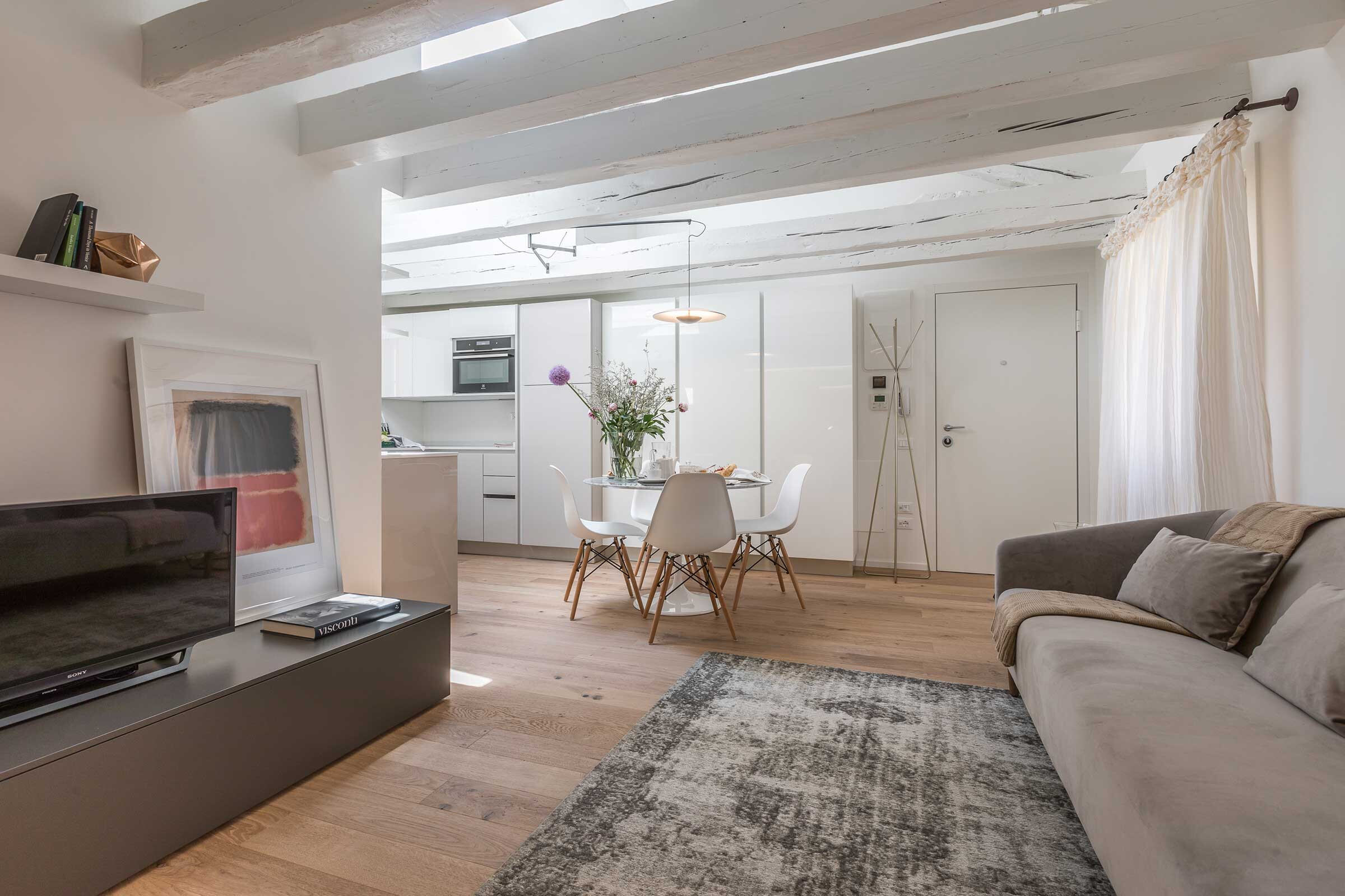 This two-bedroom apartment in the San Marco District near luxury shopping and steps from the La Fenice Opera House has been exquisitely renovated.