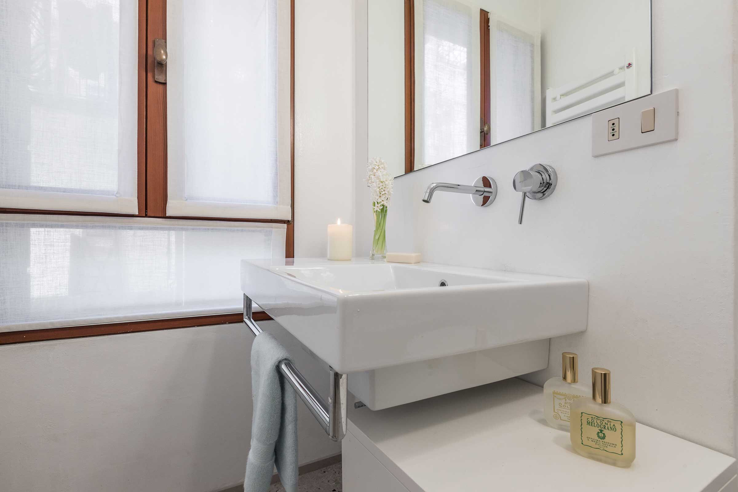 The owner furnished the Zorzi apartment with minimalist designer pieces, wisely blending materials such as metal, marble, wood, Murano glass and nice textiles, while tastefully selecting the colour palette. The result is remarkable: this apartment is both contemporary and welcoming. The amenities of this apartment include Wi-Fi and Air Conditioning.